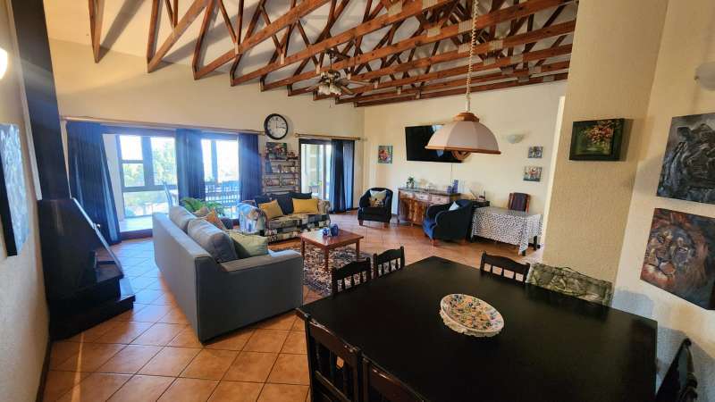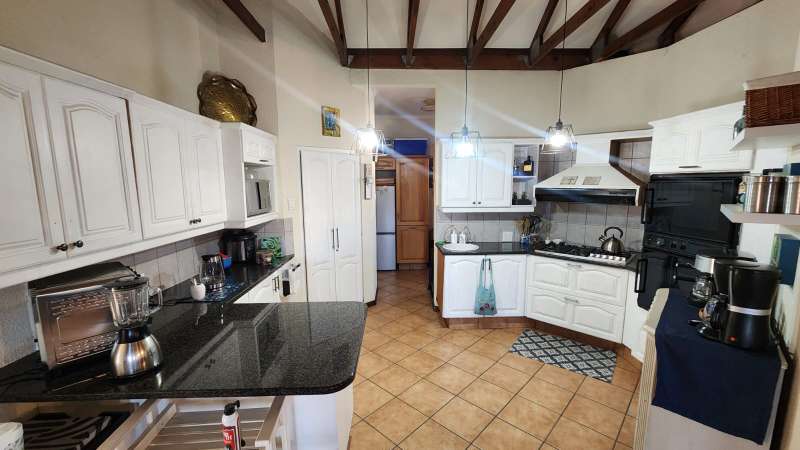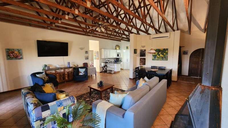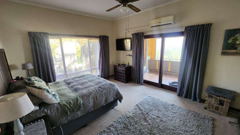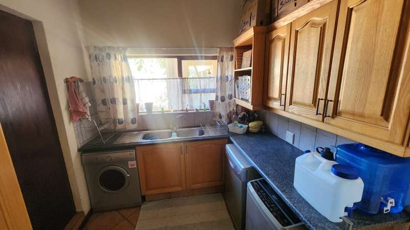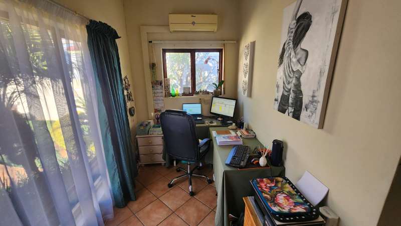 Welcome to your dream home, a beautifully designed 3-bedroom sanctuary nestled in a secure estate, offering space, style, and comfort on a generous 700m² stand. As you enter through the welcoming entrance hall, you're drawn into a warm and inviting open-plan living and dining area, complete with a cozy fireplace and air-conditioning for year-round comfort. The modern kitchen is the heart of the home, seamlessly connected to both the living space and a separate scullery and laundry room for added convenience. All three bedrooms are generously sized, with the main bedroom boasting its own aircon, a luxurious walk-in closet, and a full en-suite bathroom with both bath and shower. A second full bathroom serves the additional bedrooms, all of which are equipped with ceiling fans to keep things cool and breezy. The main bedroom and lounge both open onto a lovely, elevated balcony, perfect for your morning coffee or evening unwind. Need to work from home? There's a dedicated study with its own aircon too. Downstairs, a spacious wine cellar awaits, offering potential to be transformed into an additional flatlet or entertainment haven. And yes, if you have a furry friend or two, they'll feel right at home here—after all, a home this warm wouldn’t be complete without wagging tails or a purring welcome!