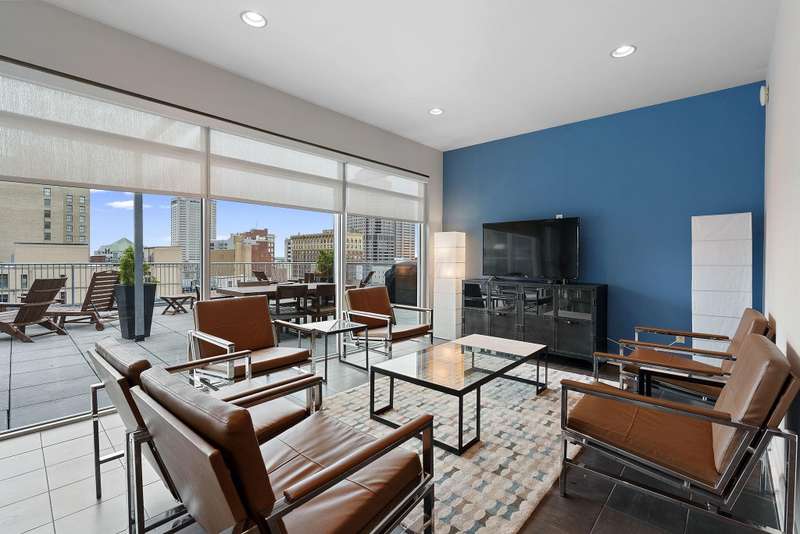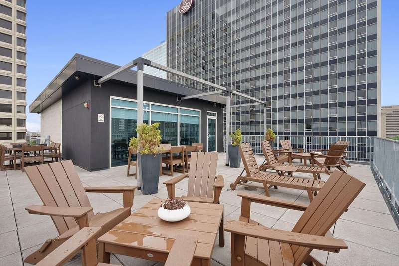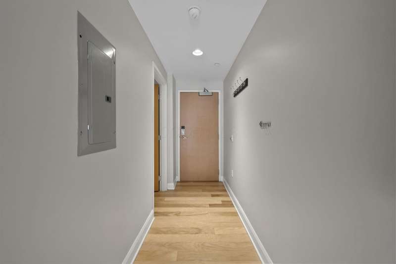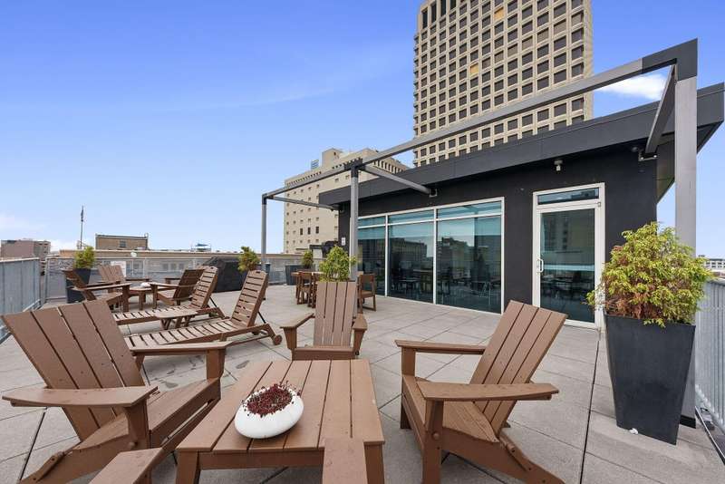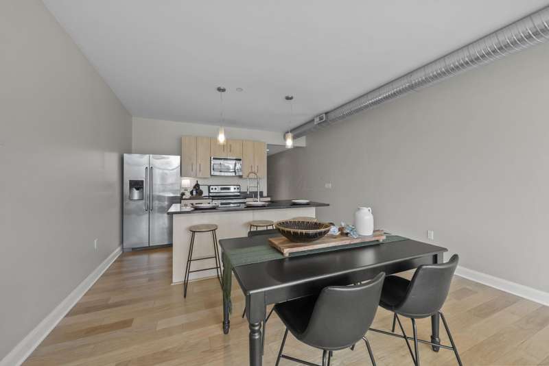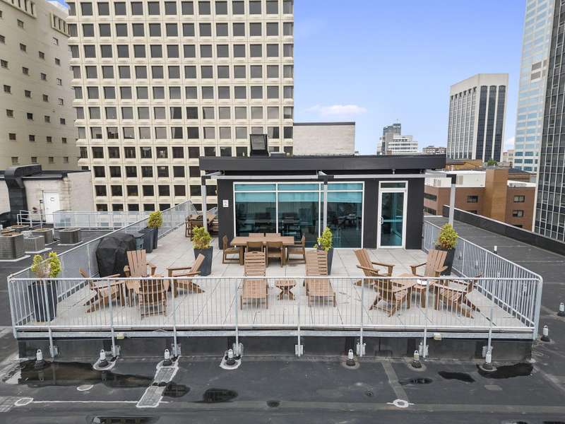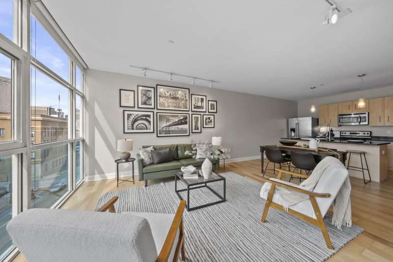 A Downtown Condo with immaculate views? Say no more! This is the PERFECT home for city living and soon to be part of the Capital Line, which is a 2-mile pedestrian path that will connect downtown attractions, green spaces, and neighborhoods! (photo of path route in photos) Opening the door to your new condo, you're immediately met with gorgeous hardwood floors, freshly painted walls and trim, and an immediate escape from the bustling downtown feel into your own quiet oasis. The open floor plan features a kitchen with modern white oak cabinets, s/s appliances (dishwasher '23), and an expansive island perfect for entertaining. With ample room for a formal dining table, the kitchen flows seamlessly into the family room, boasting floor to ceiling windows overlooking the cityscape below and room for large furniture, ready to make this space as cozy as possible. The full bathroom features a bath/shower combination and a stacked washer/dryer for easy access. The bedroom is back down the hallway and comfortably fits a queen bed, dresser, bedside tables and so much more! PLUS a huge walk-in closet! This unit comes with one garage space, which is easily accessible through the downstairs lobby, and the building also features an unforgettable rooftop lounge! Thinking of hosting a group of friends and family? The rooftop is the place to be! Don't wait to check out this unit - there others in the building available, but none with this SPACE and VIEW! All included in HOA fee: Gigabit wired & WiFi internet, water/sewer, trash/recycling. Rentals are welcome! (30-day minimum).