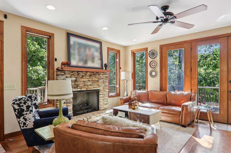 Discover unparalleled tranquility in this stunning home, perfectly situated on 5 acres of complete privacy. This is more than a home; it's a mountain sanctuary for those who appreciate nature & serenity. Step inside & be greeted by the expansive great room, a true heart of the home, featuring a beautiful gas log fireplace that creates a cozy & inviting atmosphere. The indoor & outdoor living spaces flow seamlessly with wrap-around decking and screened-in deck areas, offering multiple spots to relax & take in the natural beauty surrounding you. The massive primary suite is a retreat in itself, complete with its own gas-log fireplace, ideal for those cool Fall evenings . A screened deck off the suite provides a private space for morning coffee. Step outside to explore your private haven, which includes a charming firepit perfect for gatherings and s'mores. For the ultimate nature lover, your property is a dream, as itbacks up to over 1,700 acres of protected game lands, ensuring your privacy & a stunning natural backdrop. The perfect blend of luxury, comfort & nature. This is a rare opportunity to own a piece of paradise. This property had a solid STR history prior to the seller's purchase. All furnishings can be purchased with the property.