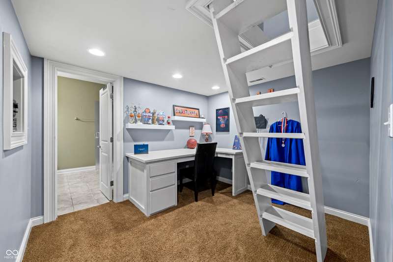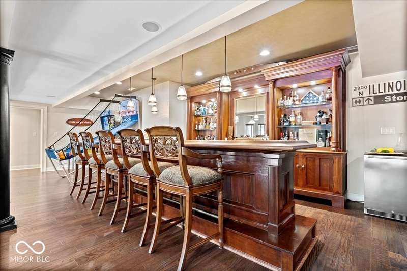 Welcome home to your Entertainers Dream! This ONE of ONE custom residence is a true showpiece, complete with a DEEDED BOAT DOCK with a LIFT, Indoor Basketball Court, Gunite Swimming Pool, and a prime location on a quiet CUL-DE-SAC in the coveted Cambridge community. Welcome to 13637 Golden Ridge Lane in Geist. The main level welcomes you with a Private Study, an Elegant Dining Room, and a Soaring Great Room anchored by 1 of 3 fireplaces. The Remodeled Kitchen features stunning cabinetry, a Center Island, and flows seamlessly into the Hearth Room for gatherings. The Luxurious MAIN-LEVEL Primary Suite is a retreat of its own, offering a Fireplace, Deck Access, Spa-Style bath, and not 1 but 2 Walk-in Closets. Upstairs, discover a Versatile Loft, three additional bedrooms with convenient bath access, one boasting a private deck, and another showcasing a Unique INDOOR BASKETBALL COURT and study area-perfect for active lifestyles. The Walkout Basement is an Entertainer's Paradise in and of its self. With a Full Bar, Billiards area, Theater room, Exercise Studio, a 5th bedroom with private bath, and a 6th bedroom which can be transformed into a Bonus/Playroom. The Outdoor Living Spaces are Absolutely Unmatched. Featuring A Freshly Remodeled Pool Deck, an Outdoor Bar/Kitchen with Gas Grill to match, Cozy Fire Pit, and Multiple Lounge Areas that capture the Beauty of the Private Homesite. Along with the home, the sellers are also offering for sale a 2021 Axis Surf Boat (perfect for enjoying Geist Lake just steps away) and an Electric Golf Cart for neighborhood or lakefront cruising-making this property the COMPLETE PACKAGE for recreation and relaxation. And a prime location on a quiet CUL-DE-SAC in the coveted Cambridge community. There's No Place Like a New Home at Geist!