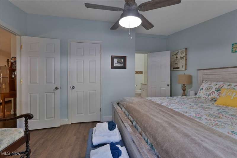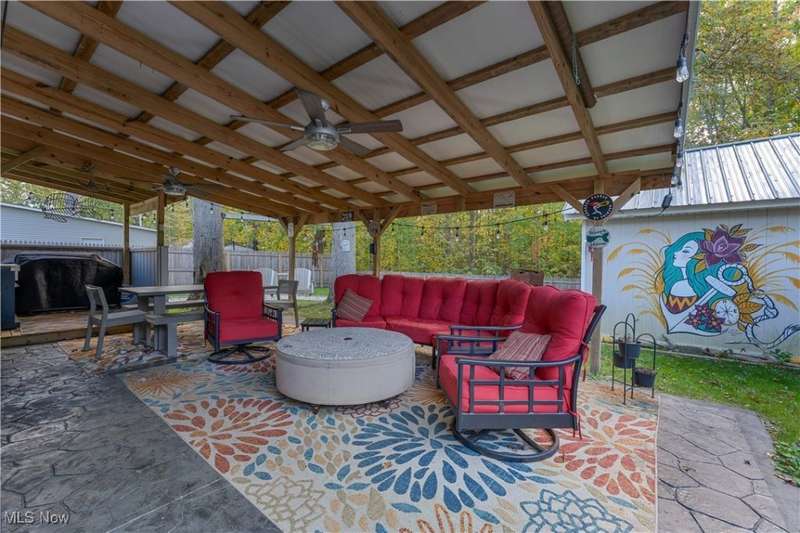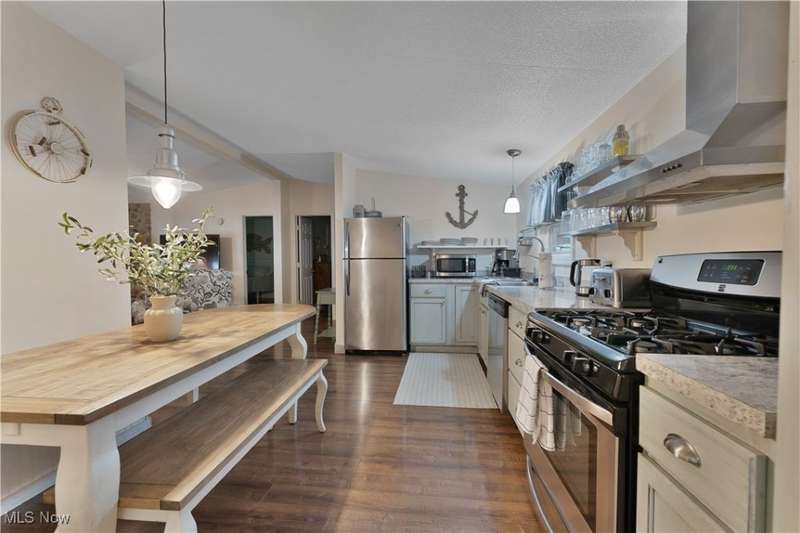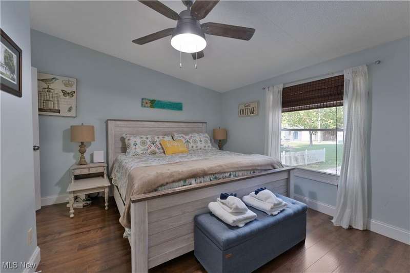 Welcome to your perfect retreat near the heart of Geneva-on-the-Lake! This beautifully maintained 3 bedroom, 2 bath manufactured home is being sold fully furnished and is ideally located just a golf cart ride from Geneva Township Park and the famous Geneva-on-the-Lake Strip. Enjoy the perfect blend of relaxation and recreation right at your doorstep. Inside, you'll find an inviting open floor plan that seamlessly connects the living, dining, and kitchen areas that are ideal for entertaining or cozy nights by the gas fireplace. The spacious eat-in kitchen offers plenty of room for gatherings, but the real highlight awaits outside: your own private backyard oasis. From dining alfresco on the stamped concrete covered patio, to relaxing under the covered hangout area, or enjoying quiet moments in the fully fenced yard, this serene outdoor space is perfect for unwinding or hosting guests. A storage shed provides added convenience, making this home as functional as it is comfortable. Whether you're seeking a summer getaway, a year-round residence, or a turnkey short-term rental, this property delivers. With its blend of comfort, charm, and unbeatable location, it's a standout opportunity in one of Northeast Ohio's most beloved lake destinations. Don't miss your chance to own this versatile, move-in ready home!