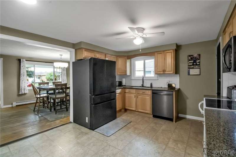 Amazing all Brick ranch with 2.5 car garage. New maple kitchen with quartz counters. Large living and dining rooms with hardwood floors. Updated windows throughout. New roof May 2025. Finished basement with 2nd full bath. Central a/c and baseboard heat. Covered front porch and storage shed in backyard. Offers delayed and due Wed 10/1/2025 at 4 pm