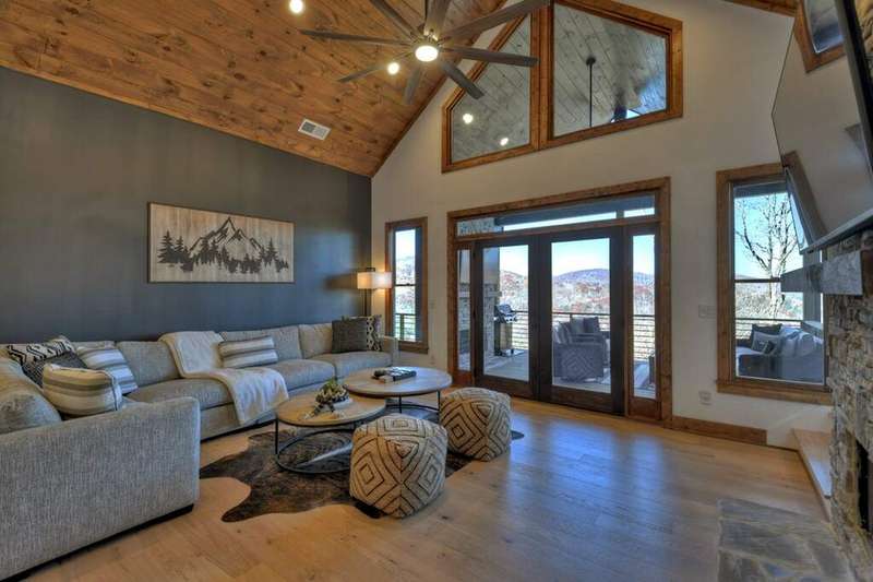 As seen on HGTV - Luxury mountain escape with STUNNING, unobstructed SUNSET VIEWS overlooking the Cohutta Wilderness! Upscale gated community with all paved roads, underground power and high speed internet. Professionally designed with high-end finishes and upgrades throughout, with an open concept floor plan that features vaulted ceilings and floor-to-ceiling windows to take in the incredible long range views. Meticulously maintained 4 bedroom, 3 bath plus additional sleeping loft with wow factor views from every room! Well-appointed chefs kitchen with separate dining area for large family gatherings. Plenty of outdoor entertaining areas including oversized covered porch off great room featuring a must-have outdoor fireplace and dining area overlooking one of the best views in Blue Ridge!. Terrace level features 2 additional guest suites, wet bar, game room and additional covered porch area with hot tub. Whole house water filtration system. Top of the mountain with plenty of parking, perfect for luxury rental program, full time living or much needed mountain getaway. Scenic drive conveniently located to historic downtown Blue Ridge, as well as, hiking, trophy trout fishing, Lake Blue Ridge, horse back riding, shopping, dining and more!