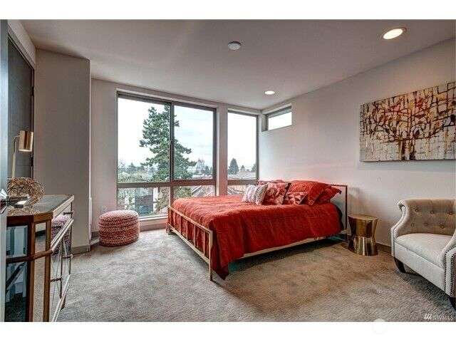 Available Now. Come see this stunning, Newer construction modern 4-star built green 4-story townhome in Greenwood! Featuring a private yard, attached garage, rooftop deck with views of the Olympics & Mt. Rainier, radiant heated floors, Custom California Closets, south-facing floor-ceiling windows, gas fireplace, Quartz counters, stainless appliances, washer/dryer, chef's kitchen, and 2 parking spaces included. One garage & one off street reserved space (most units have only 1 space). 1 pet under 30lbs w/ $750 deposit
