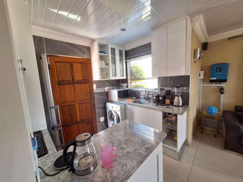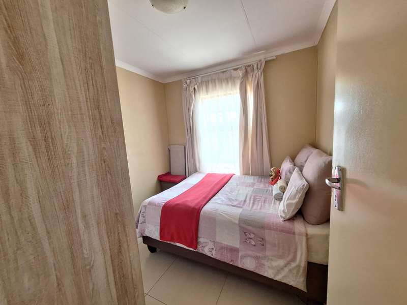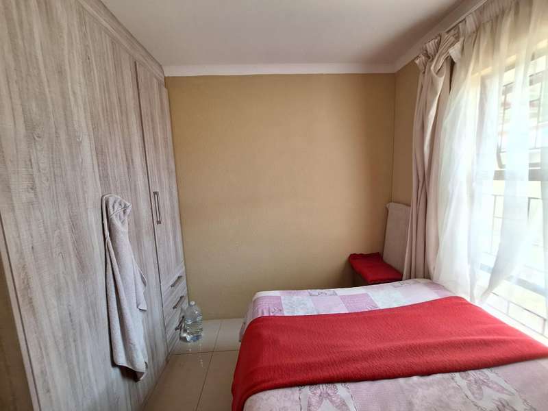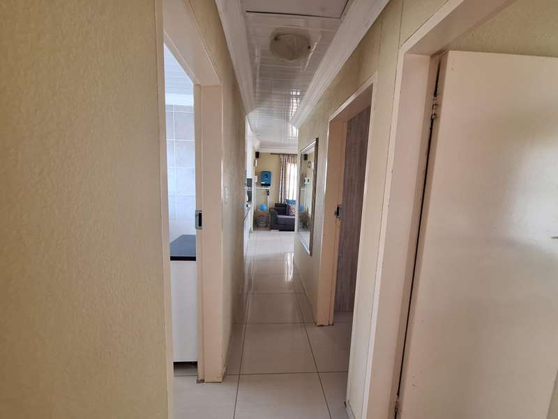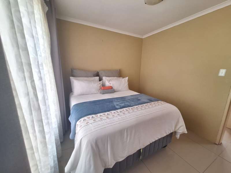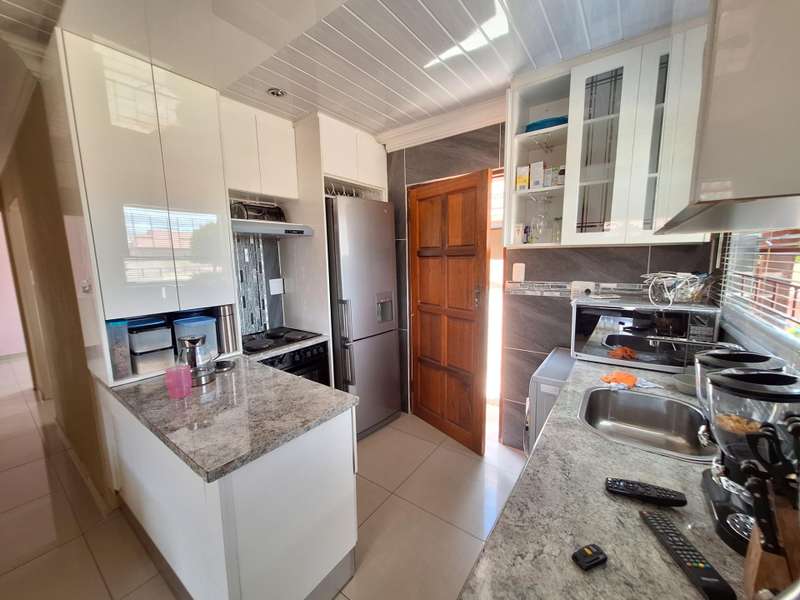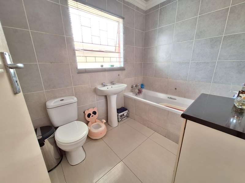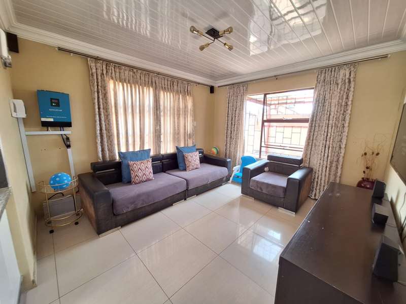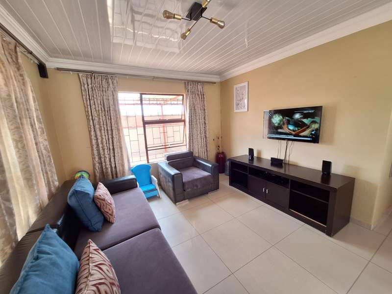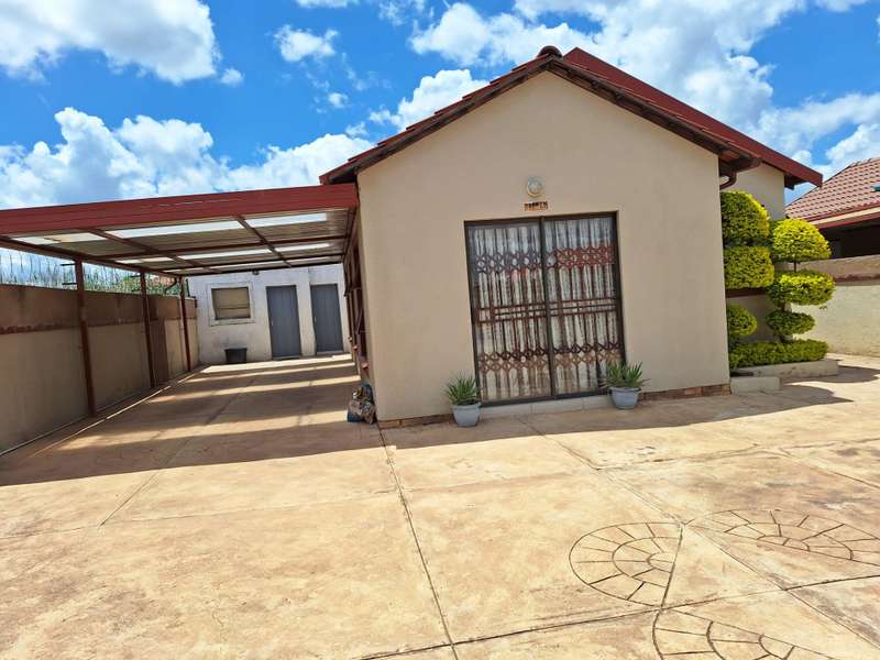 Refreshing way of living with peace of mind in a developing area close to many amenities. This morden house has everything one would need in a house. Back up system for electricity to fight again load shedding, motor gate gate security and comfort, pavement all around the yard, maid room with guests toilet outside and plenty of space to host your family and friends for a nice braai.