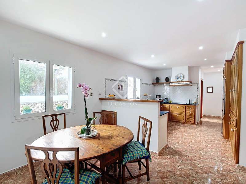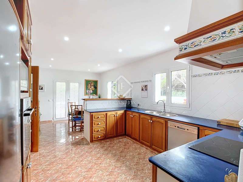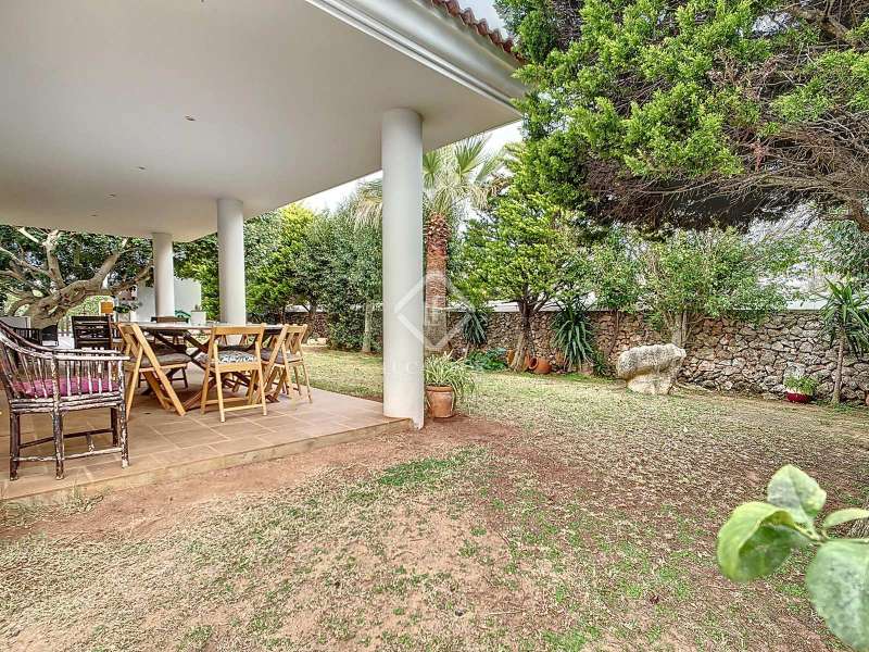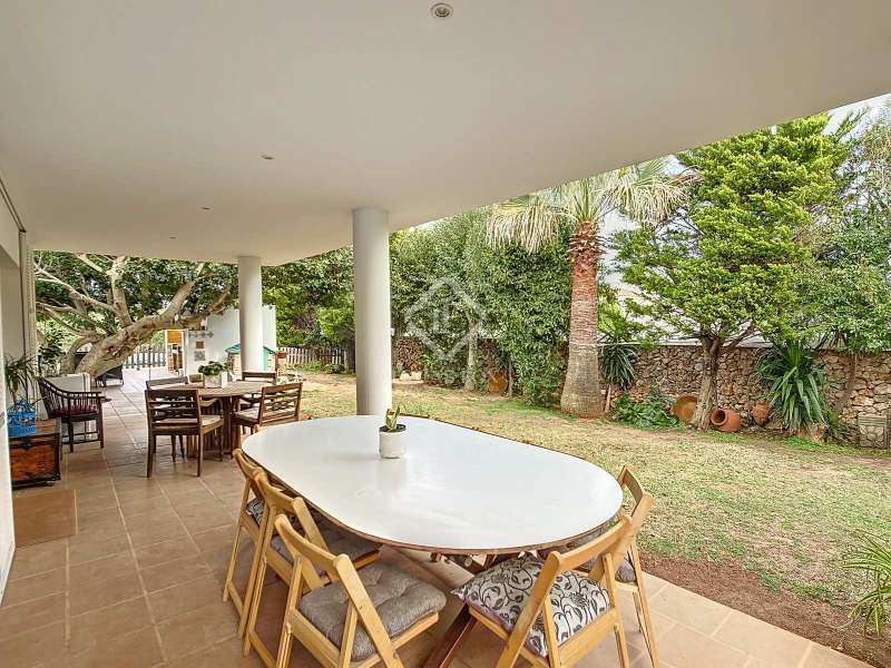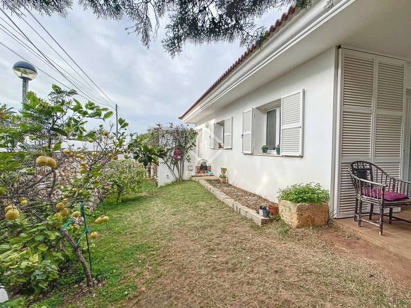 Lucas Fox presents this wonderful 289 m² villa built on a 1,000 m² plot in the prestigious development of Sa Caleta just a few minutes from the centre of Ciutadella de Menorca. The property is distributed on the ground floor and lower ground floor. At the entrance, we find a hall that leads us on one side to the large kitchen diner with utility room and access to a porch with a covered terrace. From both the hall and the kitchen, we access the living room . This has an exterior access to the same covered porch-terrace on one side and to the patio with a large barbecue area, a children's play area and next to the pool with a garden area. On the other side of the hall, a hallway leads to two double bedrooms with dressing room and the main bedroom with dressing room and private bathroom; all exterior and with access to the patio- garden. Via a comfortable staircase, we reach the lower ground floor where we find a large bedroom/ study with a large window that provides a lot of natural light to the room, a bathroom with a shower and the garage with a small storage room. Exterior we have a large garden, with a large patio area with a barbecue and a bathroom with a shower, a children's play area and a 48 m² pool. The property has good finishes, aluminum carpentry with double glazing, underfloor heating on the ground floor and hot-cold split air conditioning in the living room and main bedroom, as well as oil heating with a radiator in the bedroom. of the lower ground floor, bathroom and solar panels. In addition, the property has its own well within the plot. Without a doubt, an ideal property to live in all year round, due to the comfort of its layout on a ground floor, as well as the possibility of spending time with family and friends as it is very close to the Sa Caleta beach and the centre . from the city. Contact us for more information or to arrange a visit.