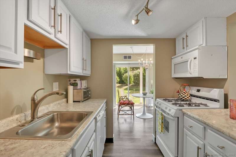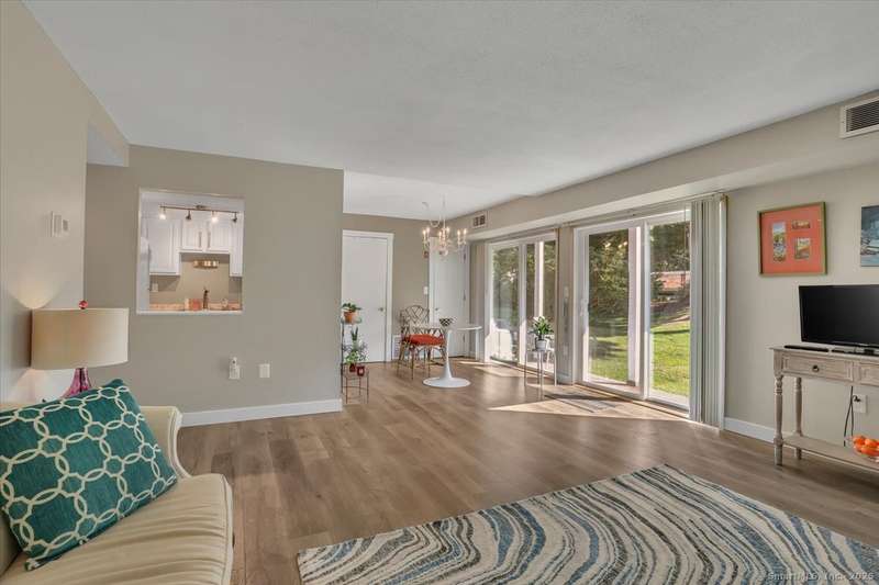 Well-maintained 2-bedroom, 1-bath ranch-style condominium with convenient first-floor living in a desirable community. This spacious unit features a functional layout and a bright living area with double sliding glass doors that open to a private patio. You're sure to enjoy the added convenience of a separate entrance through the patio! The kitchen is equipped with gas cooking, and the HOA fee includes hot water, natural gas for heating and cooking-making budgeting a breeze. Covered carport parking is included, offering protection from the elements year-round. Easy walk to the library, Rocky Hill community center, Ferry Park and the CT River! Located close to shopping, dining, and major commuter routes, this home combines comfort, affordability, and convenience.