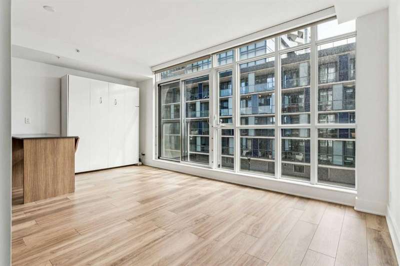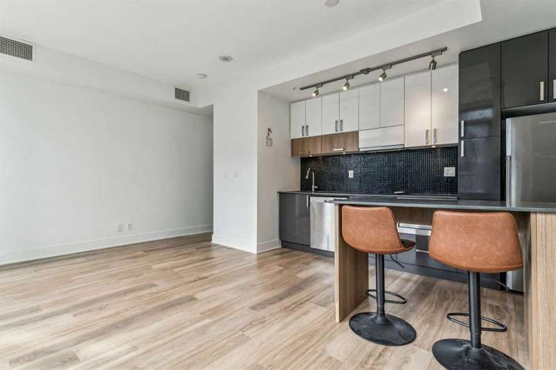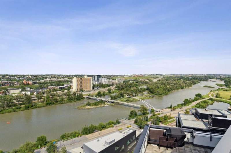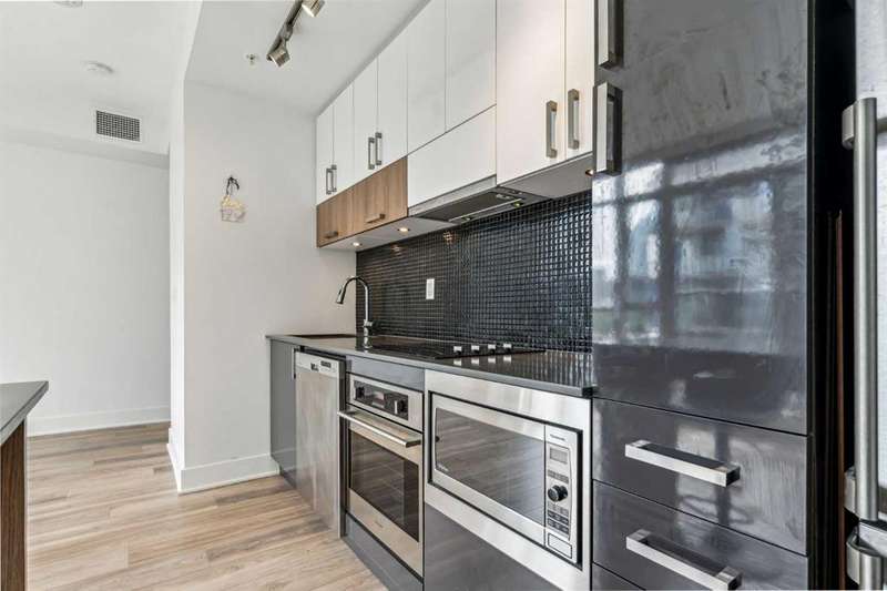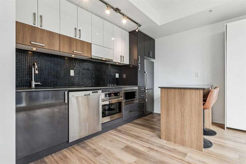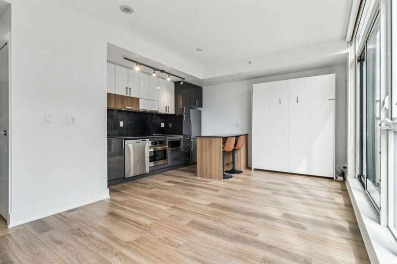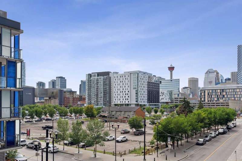 Welcome to FIRST—an exceptional opportunity to own in one of Calgary’s most dynamic communities! This thoughtfully designed studio condo combines modern comfort with an unbeatable location. Situated on the 4th floor, enjoy stunning south-facing city views through floor-to-ceiling windows and a smart open-concept layout. The sleek, European-inspired kitchen boasts stainless steel appliances, under-cabinet lighting, and soft-close cabinetry. A stylish 4-piece bathroom with a deep soaker tub, in-suite laundry, TITLED underground parking, and separate storage locker add to the home’s convenience. Located just steps from Bow River pathways, parks, shops, dining, and transit—this unit is perfect for professionals or investors. Don't miss your chance to live or invest in Calgary’s premier riverside community!