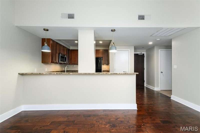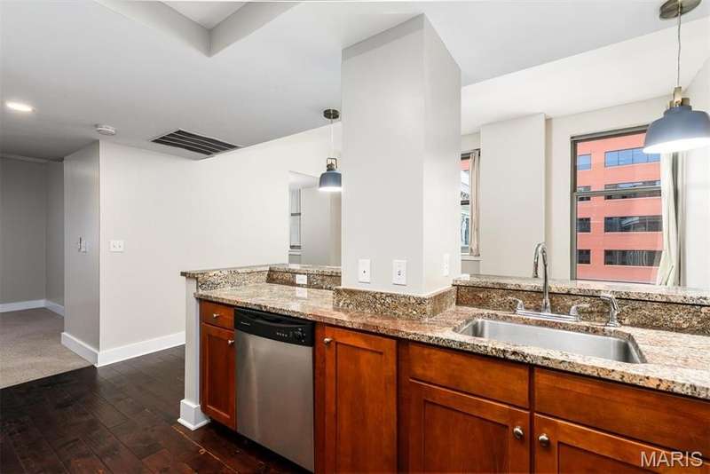 This great luxury condo is on the top floor of the building and receives lots of natural light while overlooking the interior courtyard. It has one bedroom, a large den, one bath, and features high-end finishes including granite counters, stainless appliances, beautiful wood floors, and large walk-in master closet. The Marquette building features a beautiful rooftop pool & sun deck, dry cleaning services, a doorman to greet your guests and accept your packages, state of the art security high speed elevators and more. Convenient to MetroLink & all that downtown St. Louis has to offer. You’re able to walk to Cards games, the Arch grounds or Wash Ave restaurants & nightlife. In-unit washer-dryer, separate storage unit, and one garage parking space are included in the lease. Don’t miss out on this amazing unit, call me today for a private showing! No AirBnB, VRBO, or Subletting. Application fee $55 for each adult, minimum income of 3x lease rate & minimum 650 credit score required.