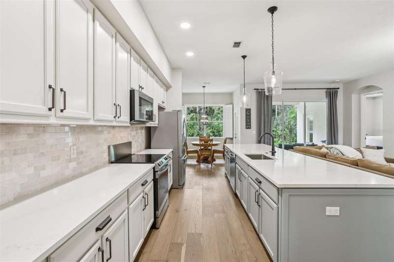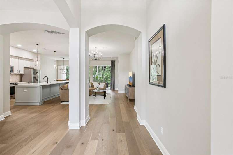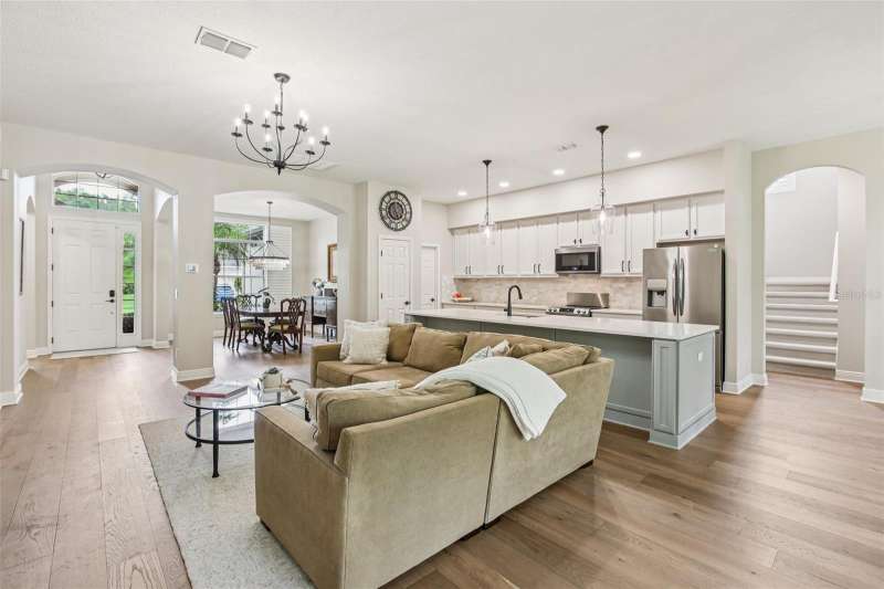 One or more photo(s) has been virtually staged. Like-New! Elegance in Seven Oaks — 3500 Grassglen Place Welcome to this beautifully updated 5-bedroom, 4-bathroom home in the desirable Grassglen enclave of Seven Oaks, offering 3,073 square feet of stylish and functional living space. With a new roof, two new A/C units, and extensive upgrades throughout, this residence truly lives like new! Step inside to discover an open, light-filled layout enhanced by freshly painted neutral walls and plantation shutters throughout. The downstairs showcases newly installed wide plank engineered hardwood floors with timeless appeal, complemented by newly installed premium carpet in two bedrooms, as well as in the upstairs and spacious bonus room—perfect as a media room, playroom, or home office. The heart of the home is the fully renovated kitchen, featuring quartz countertops with marble backsplash, a massive quartz island, and abundant cabinetry. Throughout the home, new designer light fixtures enhance every space with warmth and elegance. All bathrooms shine with sleek quartz finishes, creating a cohesive and luxurious feel throughout. The primary suite offers a serene retreat with a spa-like bathroom and generous walk-in closet. From the living area, sliding glass doors open to the outdoors, where you can relax and take in the natural beauty of the preserve—a perfect backdrop for peaceful mornings having morning coffee or evening gatherings. Every detail of this beautiful home has been considered—new paint, plantation shutters, premium flooring, upgraded lighting, and wide plank hardwoods—making this home truly move-in ready. Living in Seven Oaks means resort-style amenities at your fingertips: multiple pools, fitness center, clubhouse, playgrounds, tennis courts, pickleball courts, and scenic walking trails. All of this is just minutes from top-rated schools, shopping, dining, and major commuter routes. This must-see home combines elegance, thoughtful designs, timeless upgrades, comfort, and tranquil preserve views in one of Wesley Chapel’s most sought-after communities.