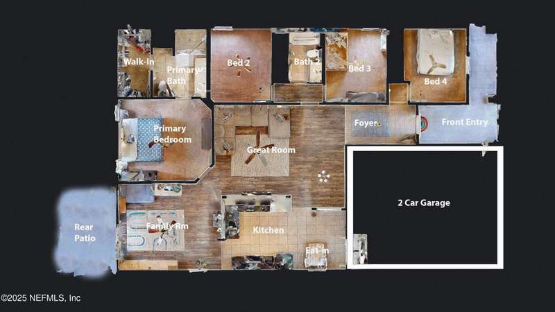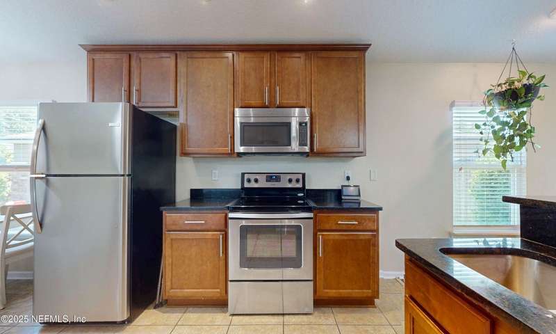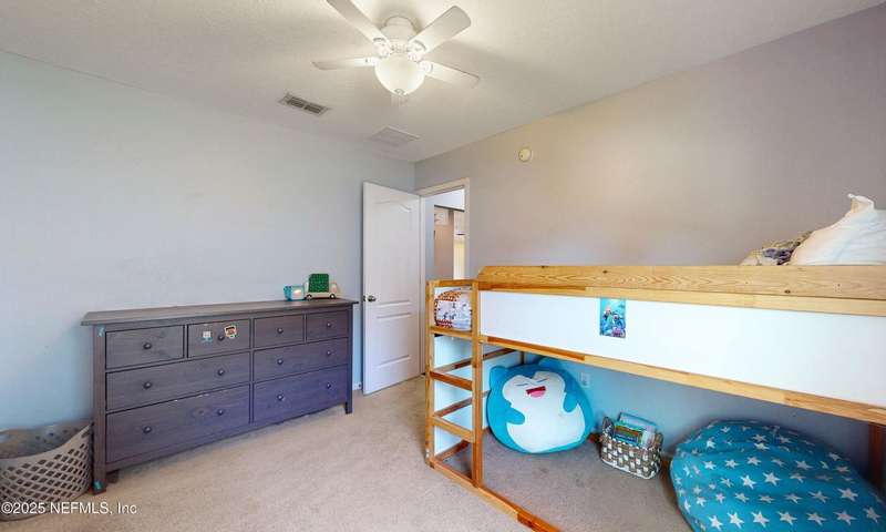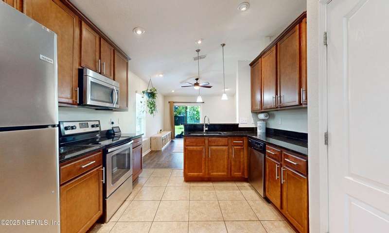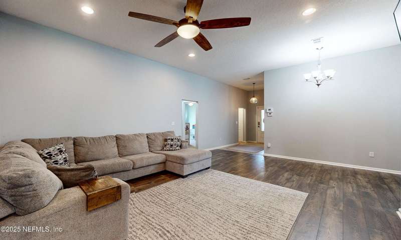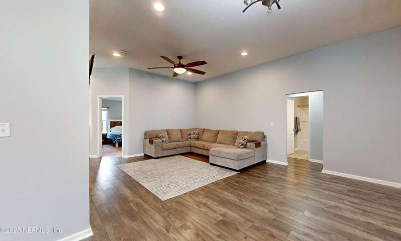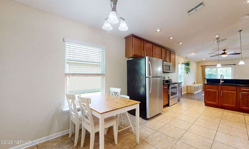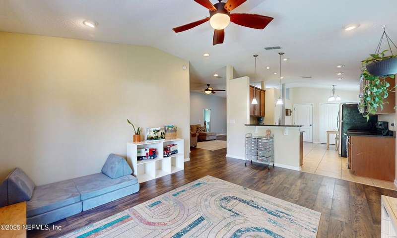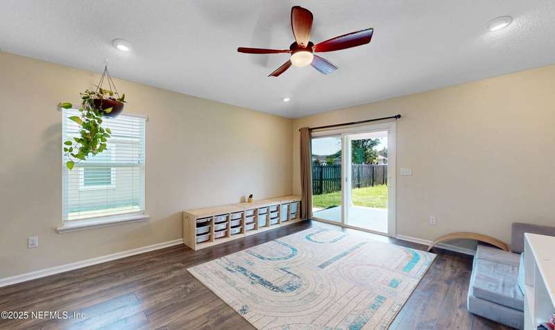 Welcome home to this spacious 4 bedroom, 2 bath beauty in a great neighborhood with resort-style amenities! The open layout offers Living, Dining, and Family Rooms-perfect for everyday living and entertaining. Enjoy the updated plank flooring, neutral d?cor, and a 3-way split bedroom design for added privacy. The Eat-in Kitchen features stainless appliances, 42'' warm wood cabinets, pantry, and breakfast bar open to the Family Room. The primary suite is your retreat with a large tiled shower, double vanity, and walk-in closet. The split front bedroom makes a great home office. Grill & chill on the covered patio overlooking the fenced yard, complete with a storage shed. Washer & Dryer stay! Community amenities include a splash park, pool, tennis courts, gym, and playground. 2-car garage. Conveniently located between Mayport, NAS & Kings Bay-minutes to JIA and River City Marketplace shopping & dining!
