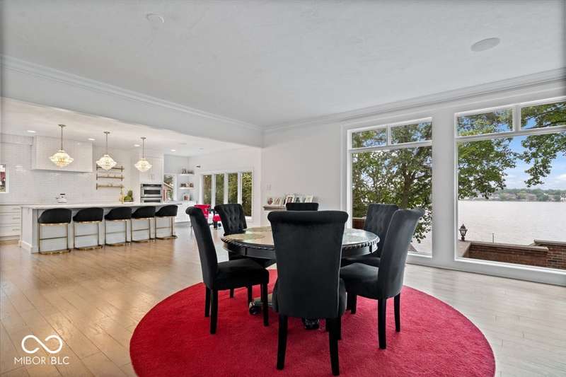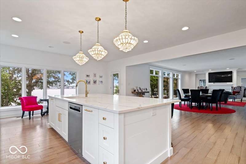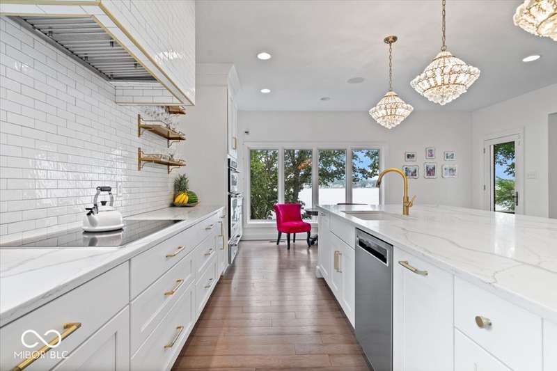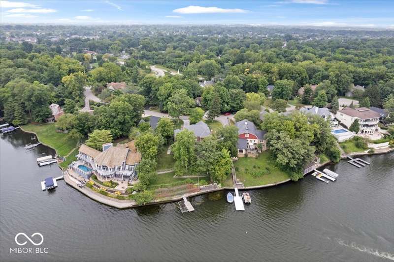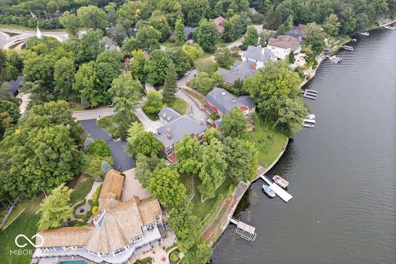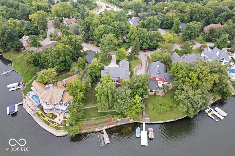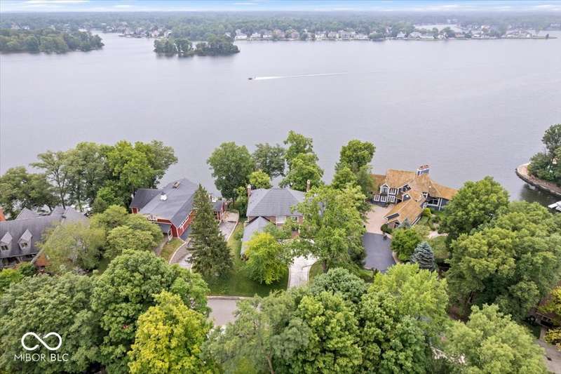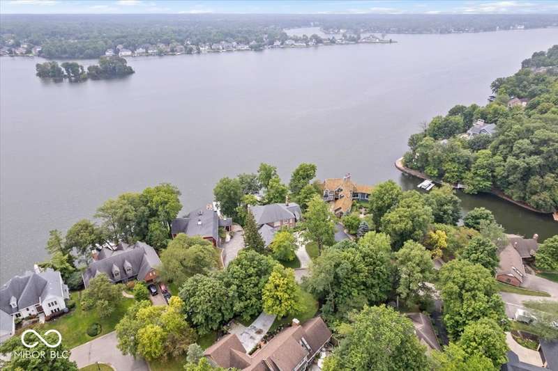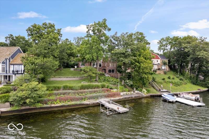 Enjoy lakeside luxury with this breathtaking all-brick estate on Geist boasting 180 ft of main body lake frontage. This home offers the ultimate blend of elegant design and modern convenience. The main level features an open-concept layout, ideal for entertaining. The fully remodeled gourmet kitchen is a chef's dream, with a large center island with seating, quartz countertops, a tile backsplash, and top-of-the-line appliances, including a built-in refrigerator, double oven, and dual dishwashers. Adjacent to the kitchen is a walk-in butler's pantry and a built-in bar area with a wine fridge. Expansive windows in the great room offer stunning views of the lake, while a cozy fireplace adds warmth and charm. A separate office space with serene lake views provides a perfect work-from-home environment. The main level also includes a guest room with a fully remodeled bath, ensuring comfort and privacy for visitors. The primary suite is a true luxury retreat, featuring dual master closets, a dressing room, and a remodeled bath with dual sinks, a walk-in tile shower, and heated towel racks. The upper level boasts additional spacious bedrooms and a laundry room equipped with dual washers and dryers. Dual stairways at the front and back of the house provide easy access to all areas. The walk-out basement comes complete with a wet bar, family room with fireplace, a 5th bedroom, and a 4th remodeled full bath. Additional amenities include an exercise room, a wine cellar and a boat dock and lift included. The 3-car garage has epoxy floors and a stairway to attic storage that spans the entire size of the garage. Outdoor living is equally impressive with updated hardscapes and beautiful brick patios on both the main and lower levels, perfect for dining and relaxation while enjoying the scenic lake views. This is the one you have been waiting for!