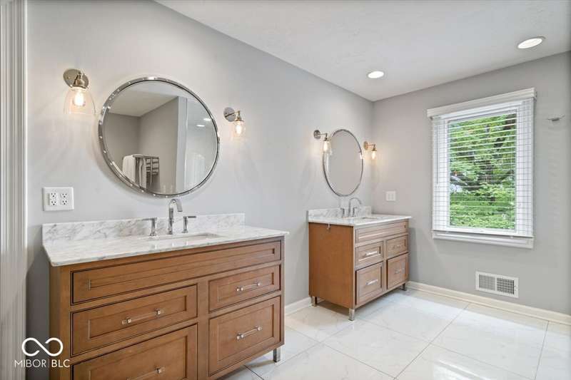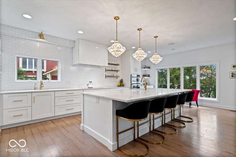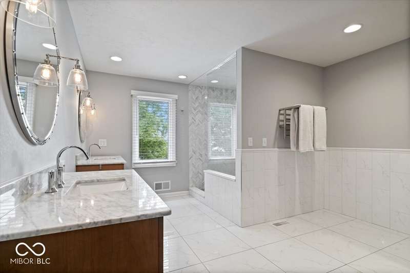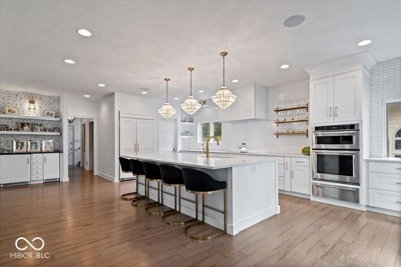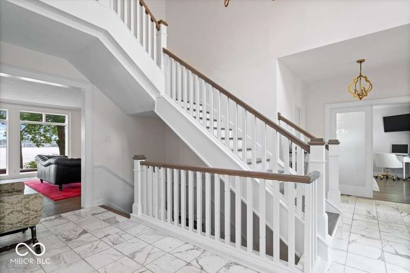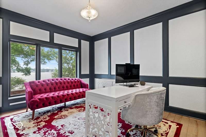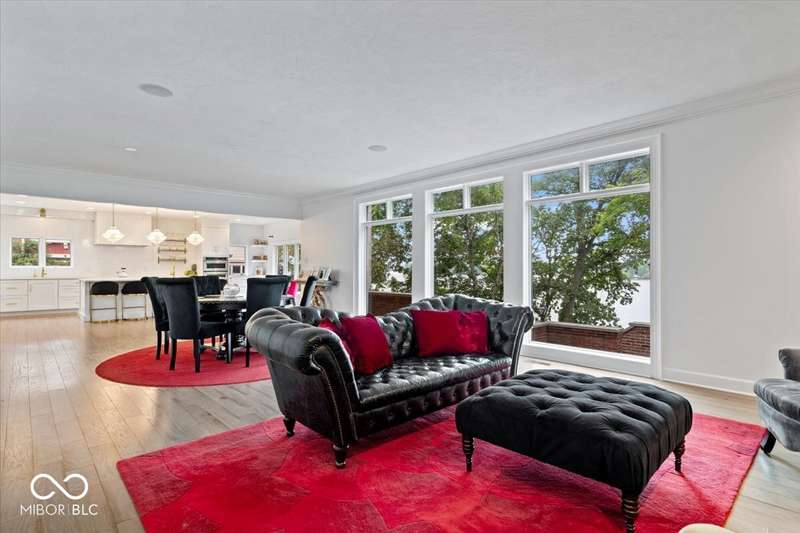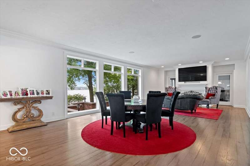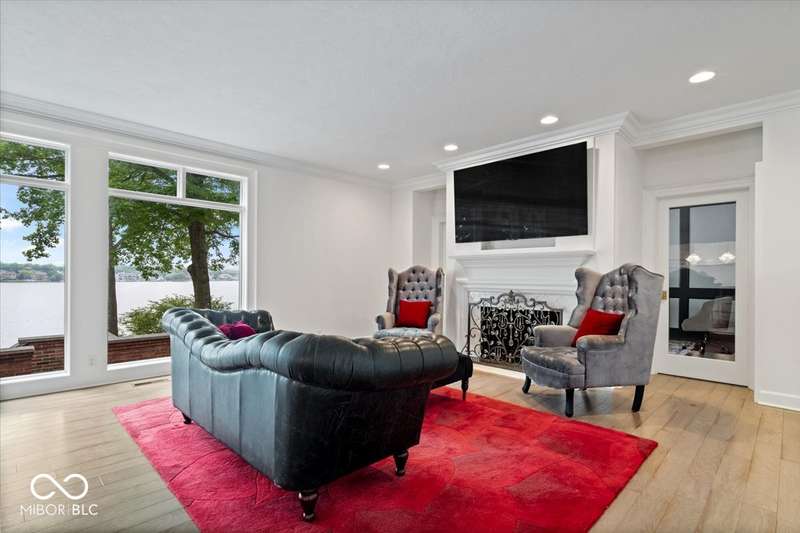 Enjoy lakeside luxury with this breathtaking all-brick estate on Geist boasting 180 ft of main body lake frontage. This home offers the ultimate blend of elegant design and modern convenience. The main level features an open-concept layout, ideal for entertaining. The fully remodeled gourmet kitchen is a chef's dream, with a large center island with seating, quartz countertops, a tile backsplash, and top-of-the-line appliances, including a built-in refrigerator, double oven, and dual dishwashers. Adjacent to the kitchen is a walk-in butler's pantry and a built-in bar area with a wine fridge. Expansive windows in the great room offer stunning views of the lake, while a cozy fireplace adds warmth and charm. A separate office space with serene lake views provides a perfect work-from-home environment. The main level also includes a guest room with a fully remodeled bath, ensuring comfort and privacy for visitors. The primary suite is a true luxury retreat, featuring dual master closets, a dressing room, and a remodeled bath with dual sinks, a walk-in tile shower, and heated towel racks. The upper level boasts additional spacious bedrooms and a laundry room equipped with dual washers and dryers. Dual stairways at the front and back of the house provide easy access to all areas. The walk-out basement comes complete with a wet bar, family room with fireplace, a 5th bedroom, and a 4th remodeled full bath. Additional amenities include an exercise room, a wine cellar and a boat dock and lift included. The 3-car garage has epoxy floors and a stairway to attic storage that spans the entire size of the garage. Outdoor living is equally impressive with updated hardscapes and beautiful brick patios on both the main and lower levels, perfect for dining and relaxation while enjoying the scenic lake views. This is the one you have been waiting for!
