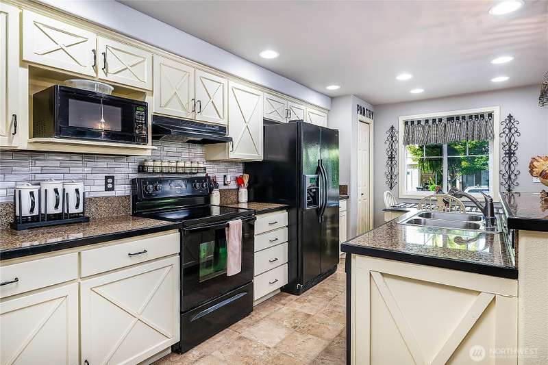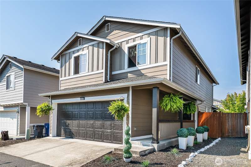 Welcome to Fox Run at The Meadows where country-chic meets city convenience! Warm, light-filled, move-in ready. Open-concept main w/hardwoods, granite, wood accents & tons of natural light. Country kitchen w/pantry + breakfast bar flows to dining area & covered patio for year-round BBQs or quiet coffee. Upstairs: 3 generous BRs + flexible family rm primary suite w/vaulted ceiling, WIC, private full bath. Everyday ease: covered front porch, covered back walkway, 2-car garage + off-street parking, fully landscaped low-maint yard. All appliances stay: fridge, range/oven, microwave, DW, washer, dryer. Sought-after neighborhood w/athletic court, playground, open fields. Min to Marysville shopping, dining, schools, Navy Commissary & I-5!