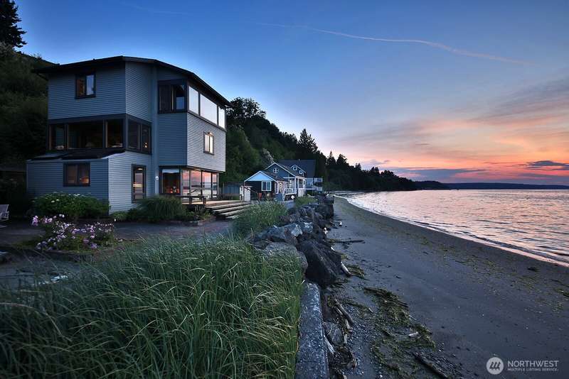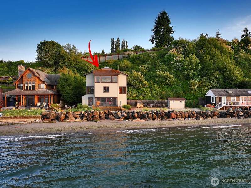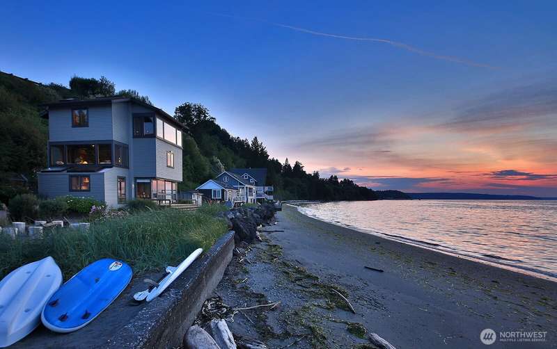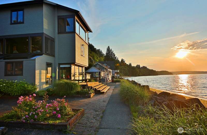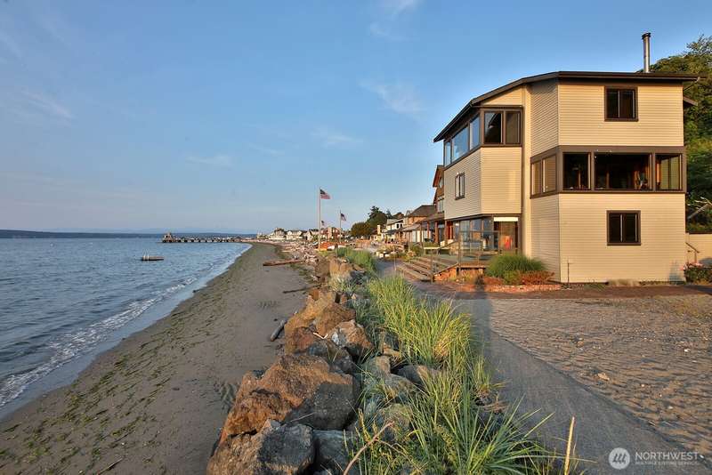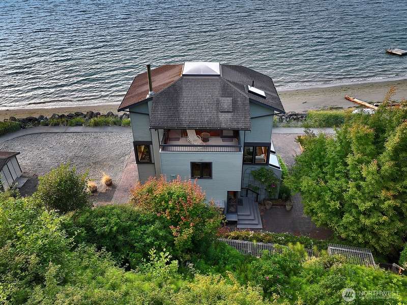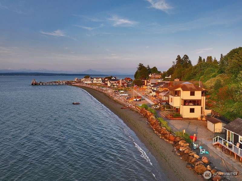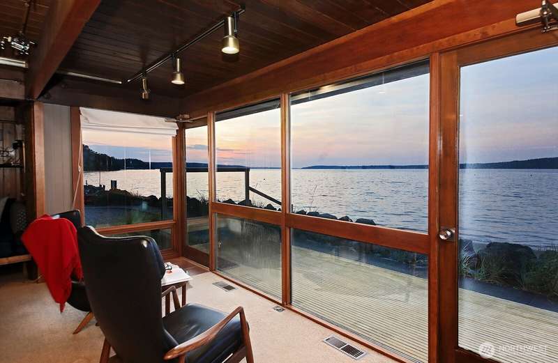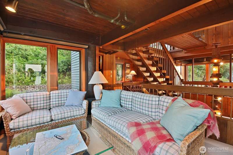 A generational treasure in Langley's historic early 1900's waterfront community where boardwalks lead to the coastal dream. Architectural brilliance meets mid-century soul on this rare beachfront home. Watch sunrises dance on the water & sunsets bathe the sky from intimate sitting rooms designed for quiet reverie. Bask in warm wood surrounds, where one floor is a dedicated primary suite, all wrapped in panoramic water views. A retreat of craftsmanship & design with a community dock, boat launch, full time caretaker, playfield & unmatched beachcombing. Just a short stroll to storybook Langley Village with charming shops, art galleries & memorable restaurants galore!