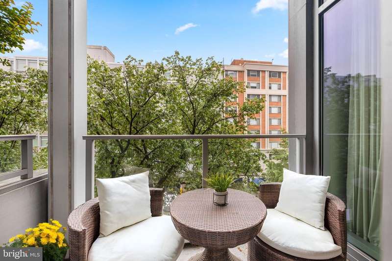 Refined 2-Bedroom / 2-Full Bathroom residence located in the highly sought-after 22 West building in the heart of West End.Unit 4F offers expansive floor-to-ceiling windows and high ceilings, creating a bright and contemporary living environment that balances modern luxury and thoughtful design. The open layout includes a generous living area and dedicated dining space, with wide-plank oak hardwood flooring throughout. The kitchen features a Bosch gas range, Sub-Zero refrigerator, quartz countertops, and streamlined Poggenpohl cabinetry for a sleek and sophisticated aesthetic. A window wall spans the entire living area, allowing southern light to pour in from the most desirable side of the building! The private enclosed balcony features an adjacent planter filled with Crepe Myrtle trees that run half the length of the unitnatural greenery that provides privacy and a sense of retreat from the city. Additional features include 9.5-foot ceilings, plentiful closet space, and elegant wood paneling in the living room and primary suite custom-designed from a single tree. A discreetly installed smart home system offers electronically controlled window shades, climate, lighting, and surround sound audio/videoall easily adjusted through an app on your mobile devices. The primary bedroom offers an expansive custom closet system and a luxurious slate-floored bathroom with a dual vanity, soaking tub, and separate standing shower. The secondary bedroom is positioned next to a full bath that is also accessible from the main living area. Additional conveniences include an in-unit full-size side-by-side washer and dryer, plus one assigned garage parking space and separate storage unit. 22 West is a full-service, pet-friendly building with a long-standing reputation for excellence.The sleek nine-story building was awarded the RADA Grand Award in 2009 for Best Multifamily Design in the United States! Amenities include a 24-hour concierge, doorman, rooftop pool and grilling area, resident lounge, state-of-the-art fitness center, and secure underground parking. Monthly condo fee includes ALL utilities:electricity, heating & cooling, Verizon high-speed cable & internet, gas, water, and trash. Located just steps fromBar AngieDCs hottest new dining destinationas well as neighborhood favorites likeRasika, Equinox, The Ritz Carlton,Tatte, Whole Foods, and Trader Joe's, this home places you at the center of West End with just a shortwalk to both Georgetown and DuPont circle! (NB- secure garage parking space (#2044) and a storage unit (#S1017) are included). Open House Sunday Sept 21st: 11am to 1pm.