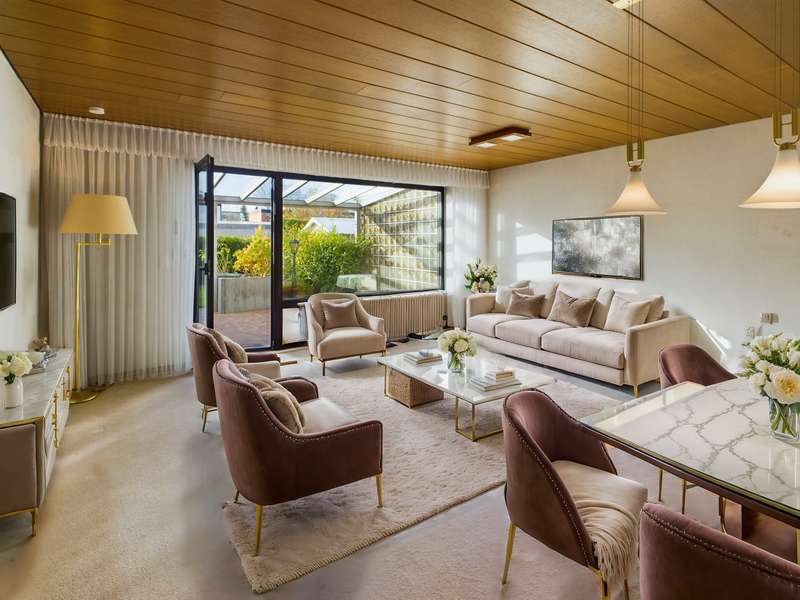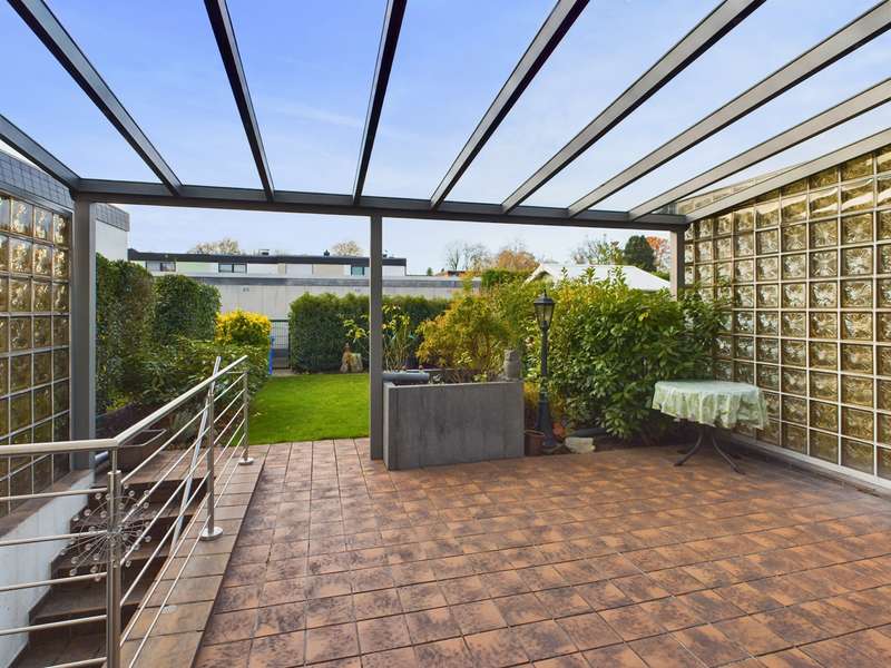 VON POLL IMMOBILIEN presents this inviting terraced house in the heart of Pulheim. With a living space of approx. 96 m² and a well thought-out floor plan, the property is ideal for couples or small families. The solidly built house extends over two floors and offers a total of four rooms, including three bedrooms and a modernized daylight bathroom. As soon as you enter the house, you are greeted by a spacious entrance area that leads to the various living areas. The light-flooded living room benefits from its south-facing orientation and creates a light-flooded atmosphere. The guest WC, which was renovated in 2006, is located directly off the entrance area. The adjoining kitchen also offers direct access to the basement, which boasts practical storage space. The lovingly designed garden is a particular highlight. The covered terrace from 2021 with integrated electric awning invites you to spend relaxing hours outdoors. The privacy in the garden is particularly noteworthy: Thanks to the adjoining garage courtyard, the terrace remains secluded and offers you a sheltered retreat. Three bedrooms await you on the upper floor, which can be used flexibly as children's rooms, guest rooms or studies. Here you will find the daylight bathroom, which was modernized in 2001 and fitted with a comfortable walk-in shower in 2019. Electric shutters throughout the house offer additional comfort. The basement offers further versatile usage options: There is a spacious hobby room with access to the garden, a storage cellar and the boiler room, in which a practical workbench has been integrated - a perfect place for manual work. The offer is rounded off by a garage in the courtyard. It was fitted with a new roof in 2015 and has a sectional garage door from 2018, which is powered by solar energy. This property is ideal for families who value a well-kept living environment and a practical room layout. The proximity to all necessary facilities for daily needs and good transport links round off the overall picture.