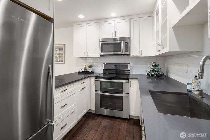 The ultimate Urban Oasis! Top-floor, corner unit, fully updated and ready for you. This home is in the heart of Greenlake & checks all the boxes. Whether you're ready to settle in or looking for a smart investment. Every detail has been thoughtfully updated to balance comfort, style, and function. Spacious primary suite, open layout, private parking, natural light, updated kitchen, and a gas fireplace that brings both warmth and style to the home. Enjoy your private covered outdoor deck for your morning cup of coffee. Boutique building, Elevator, low HOA & prime location- Close to all things Green Lake. Easy access to 99, I-5 & Rail. Emotional Support Dogs(ESA) are accepted!