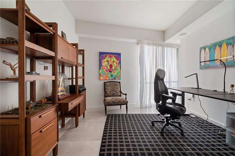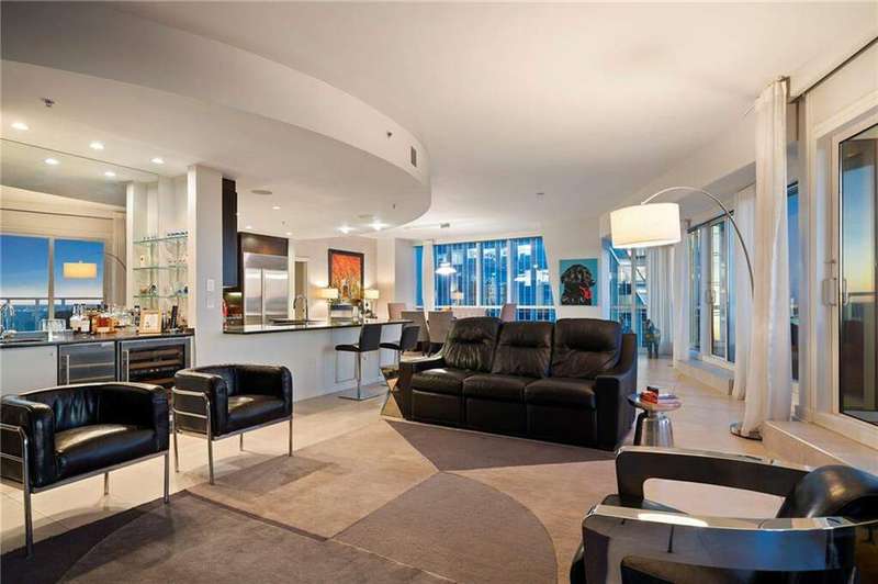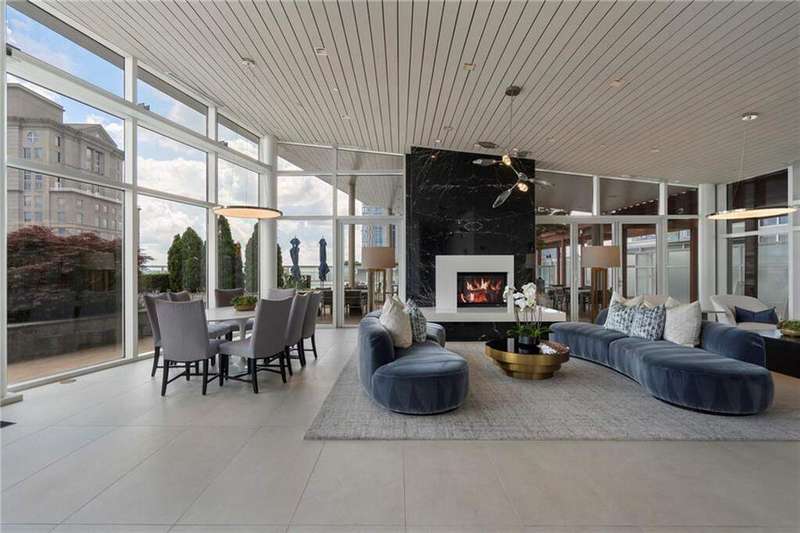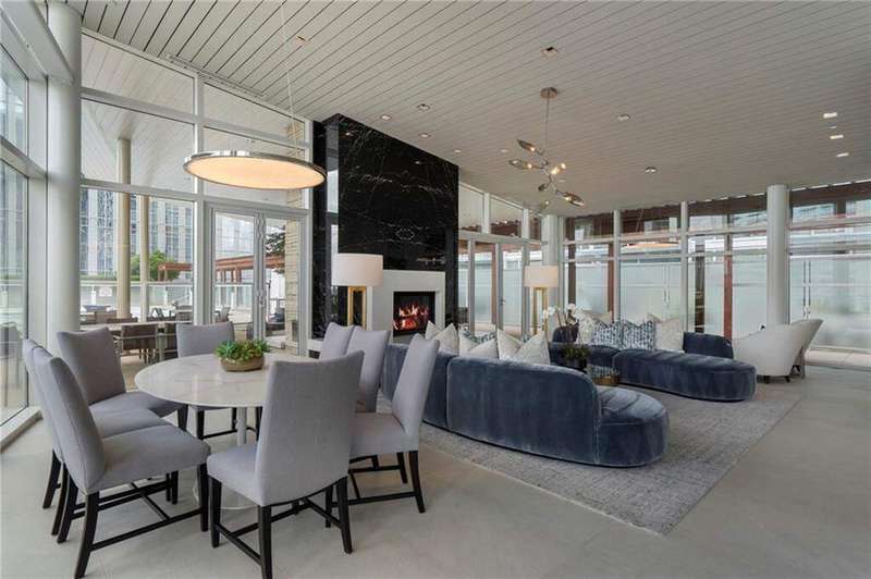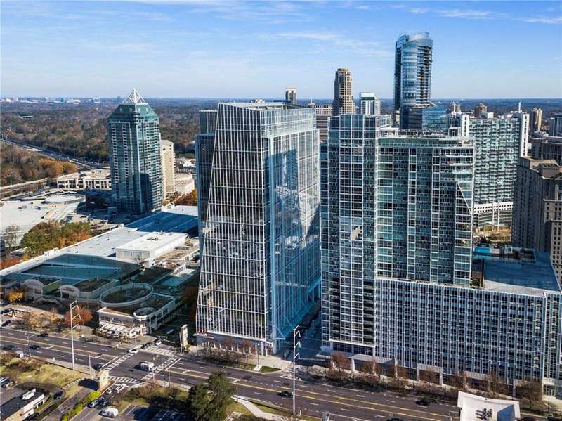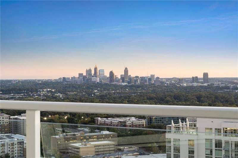 A rare offering in highly sought-after Terminus - one of only three residences with this sexy and coveted floor plan - this impressive corner unit embodies elevated Buckhead living with its expansive layout and nearly 360-degree skyline views from the 3 separate terraces. An entertainer's dream, the open-concept living area features a fireside great room and a sleek bar complete with Sub-Zero wine storage. The adjoining dining and media rooms flow seamlessly into a gourmet kitchen outfitted with top-of-the-line appliances, including Sub-Zero refrigeration, Wolf gas range and warming drawer, and a convenient breakfast bar. A separate catering entrance off the kitchen makes hosting effortless. Step outside to the oversized, covered terrace and take in breathtaking views of both Buckhead and Downtown - the perfect backdrop for dining or entertaining al fresco. Privately situated, the luxurious primary suite with Venetian plaster walls offers a tranquil retreat with a sitting area framed by floor-to-ceiling corner windows, a private covered terrace with views of Stone Mountain and Buckhead, and an expansive custom walk-in closet with a built-in safe. The spa-inspired bath showcases dual vanities and water closets, a soaking tub, and a frameless glass shower - all positioned to capture the home's extraordinary vistas. Two additional guest suites, each with ensuite baths, share a third balcony and are thoughtfully placed off the foyer for privacy. Additional highlights include Famosa Italian tile throughout, motorized shades throughout, leak defense water system, Toto toilets, and a fully integrated Lutron and Control4 smart home system and a 1/2 bathroom. Two deeded, covered parking spaces complete this exceptional offering. Perfectly positioned at Terminus, just steps from Buckhead's finest dining, shopping, and MARTA access.