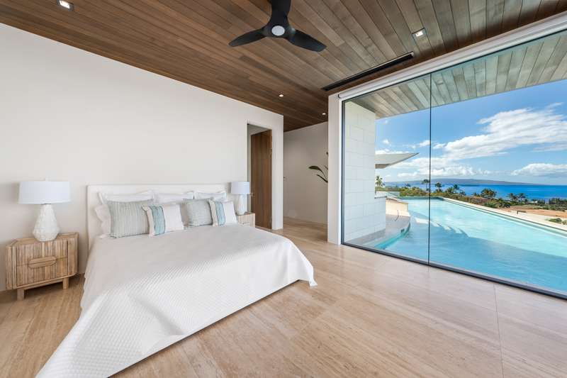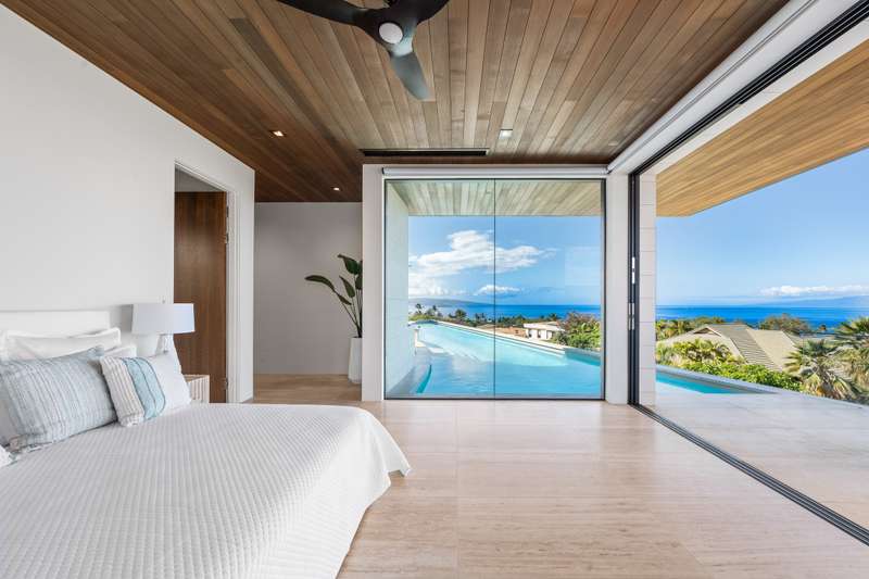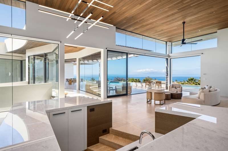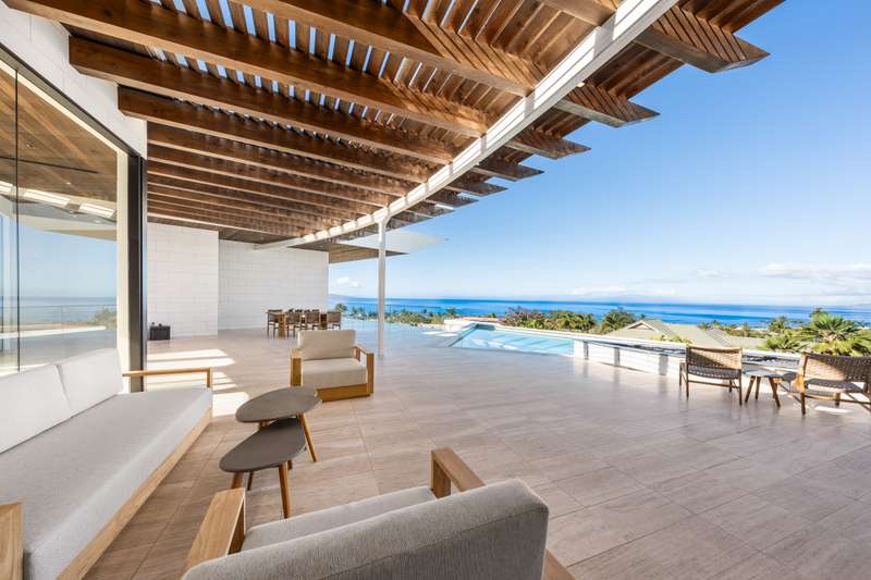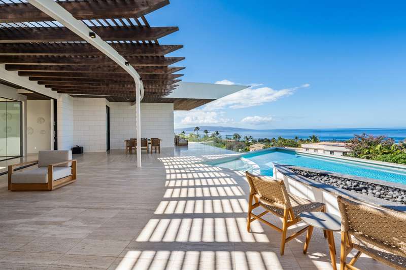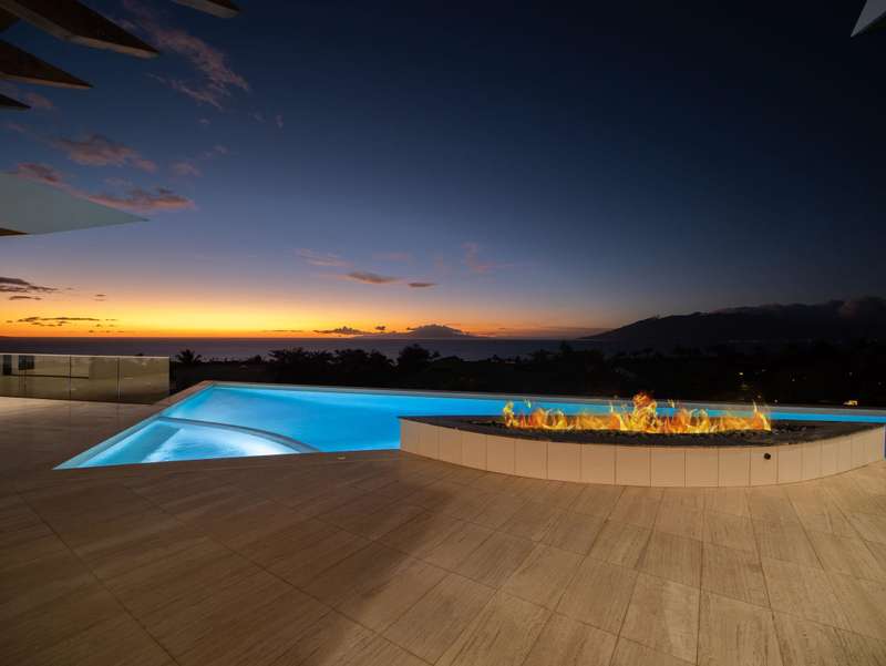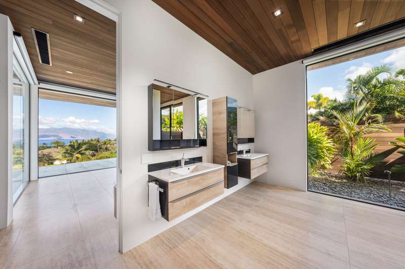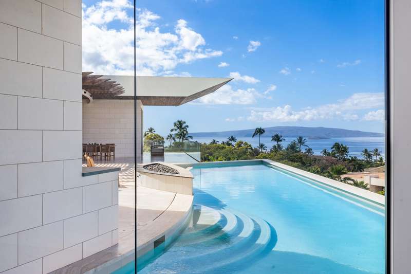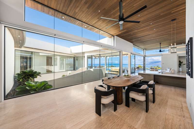 Atop the exclusive and private enclave of homes at The Ridge at Wailea, sits a masterpiece of modern architecture and design. A select few will experience the spectacular ocean views and the artistic flare of this residence as a livable sculpture. As you enter a large, covered entry, the striking black magma stone surrounds a tropical courtyard with a modern gate revealing an impressive steel and stone spiral staircase that welcomes you to another level of luxury and into another dimension of living. From the moment you enter this 5,000+ sq. ft. property, you will be struck by the floor-to-ceiling wall of windows and doors, filling the home with natural light and breathtaking views from south of Molokini to the majestic West Maui Mountains. Designed by Guy Dreier Designs and built by Trend Builders, the modern flair of this 4 bedroom, 4.5 bath estate is enhanced by sculptural shapes, dramatic lines, and organic spaces. Seamless integration of the expansive indoor and outdoor spaces serves to further enhance the open-air, island lifestyle. The remarkable layout features multi car parking and garage, media, living, dining areas, guest bedrooms with private lanais, and 2 master wings. The south wing has an exquisite master and spa-like bath, indoor/outdoor showers, a walk-in closet, and coastal views from a private lanai, an office/guest suite, laundry room, and elevator for privacy from the main living area. The north wing has a gracious master suite with expansive ocean views, indoor/outdoor shower, walk-in closet, poolside lanai, and the open-air kitchen for premier entertaining. With a large island, pantry, sunken bar with intimate seating areas, Miele wine unit, and other high-end appliances, the lavish chef’s kitchen offers guests an elegant entertaining experience. At the heart of this ultra-contemporary oasis is an outdoor lanai featuring a stunning Avant Gard pool with spa, gas fire pit for cozy evenings, a built-in barbecue, and the ultimate outdoor dining and entertaining area. Featuring sleek finishes, soaring high ceilings, Quartzite slab stone counters, Poliform systems throughout, this home has been designed with the highest attention to detail creating an air of sophistication. This is the perfect balance of single level living and contemporary comfort setting this home apart from rest. Listing Broker has a recorded interest in the property and is licensed in the State of Hawaii.