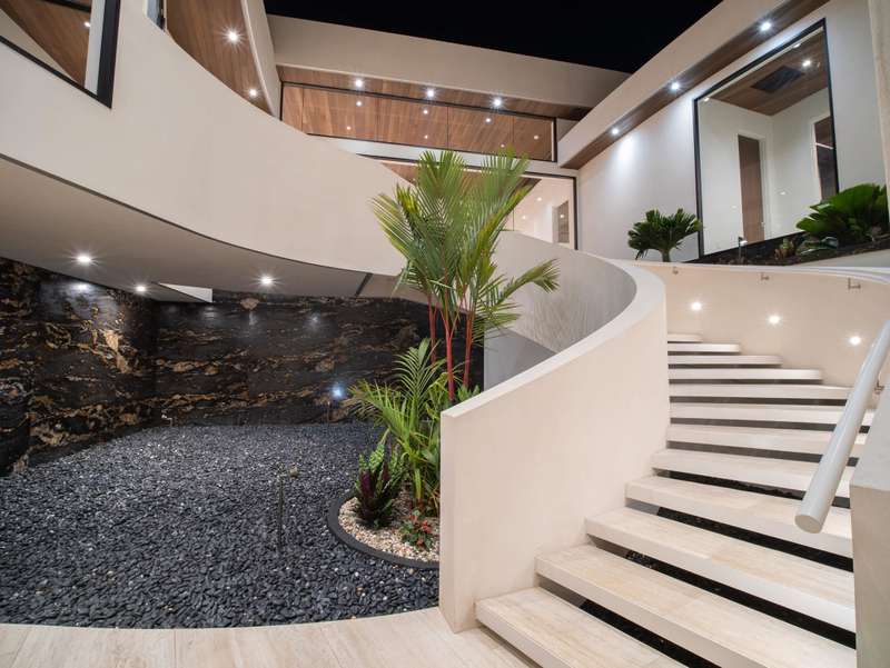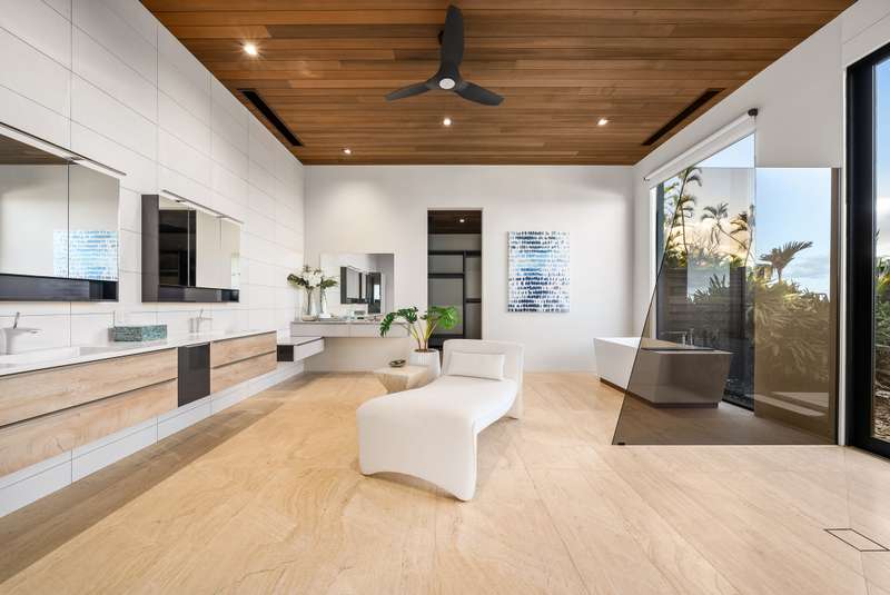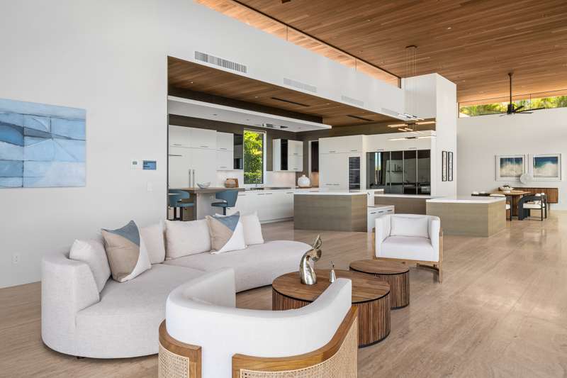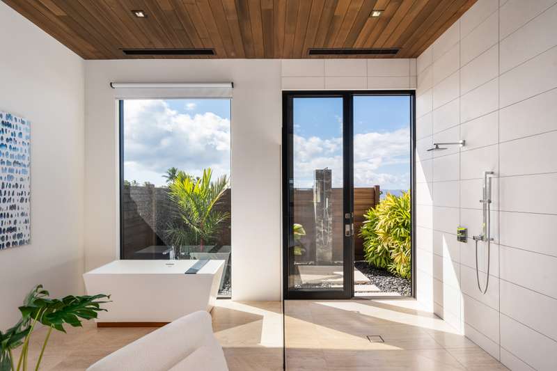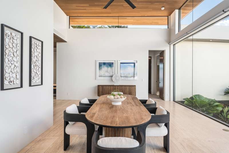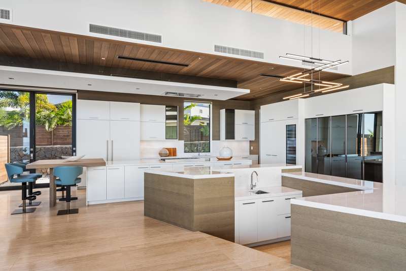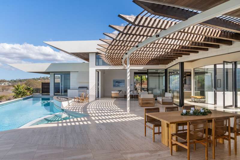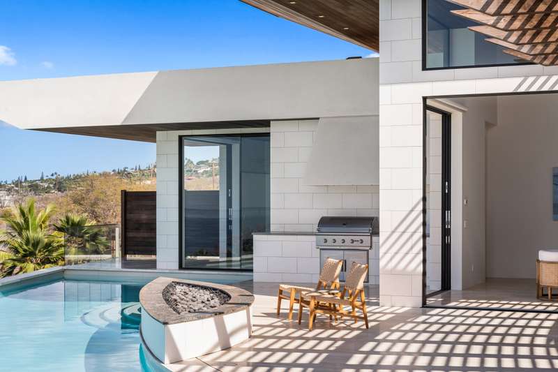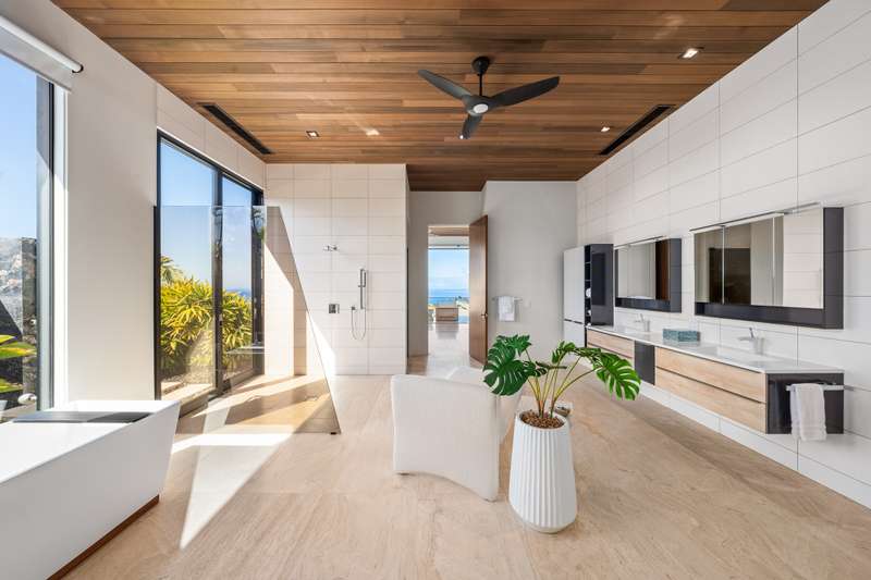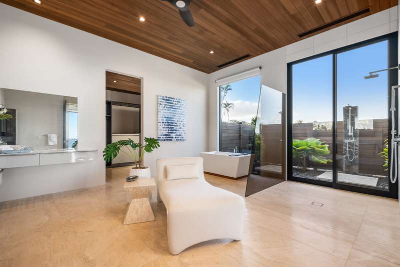 Atop the exclusive and private enclave of homes at The Ridge at Wailea, sits a masterpiece of modern architecture and design. A select few will experience the spectacular ocean views and the artistic flare of this residence as a livable sculpture. As you enter a large, covered entry, the striking black magma stone surrounds a tropical courtyard with a modern gate revealing an impressive steel and stone spiral staircase that welcomes you to another level of luxury and into another dimension of living. From the moment you enter this 5,000+ sq. ft. property, you will be struck by the floor-to-ceiling wall of windows and doors, filling the home with natural light and breathtaking views from south of Molokini to the majestic West Maui Mountains. Designed by Guy Dreier Designs and built by Trend Builders, the modern flair of this 4 bedroom, 4.5 bath estate is enhanced by sculptural shapes, dramatic lines, and organic spaces. Seamless integration of the expansive indoor and outdoor spaces serves to further enhance the open-air, island lifestyle. The remarkable layout features multi car parking and garage, media, living, dining areas, guest bedrooms with private lanais, and 2 master wings. The south wing has an exquisite master and spa-like bath, indoor/outdoor showers, a walk-in closet, and coastal views from a private lanai, an office/guest suite, laundry room, and elevator for privacy from the main living area. The north wing has a gracious master suite with expansive ocean views, indoor/outdoor shower, walk-in closet, poolside lanai, and the open-air kitchen for premier entertaining. With a large island, pantry, sunken bar with intimate seating areas, Miele wine unit, and other high-end appliances, the lavish chef’s kitchen offers guests an elegant entertaining experience. At the heart of this ultra-contemporary oasis is an outdoor lanai featuring a stunning Avant Gard pool with spa, gas fire pit for cozy evenings, a built-in barbecue, and the ultimate outdoor dining and entertaining area. Featuring sleek finishes, soaring high ceilings, Quartzite slab stone counters, Poliform systems throughout, this home has been designed with the highest attention to detail creating an air of sophistication. This is the perfect balance of single level living and contemporary comfort setting this home apart from rest. Listing Broker has a recorded interest in the property and is licensed in the State of Hawaii.