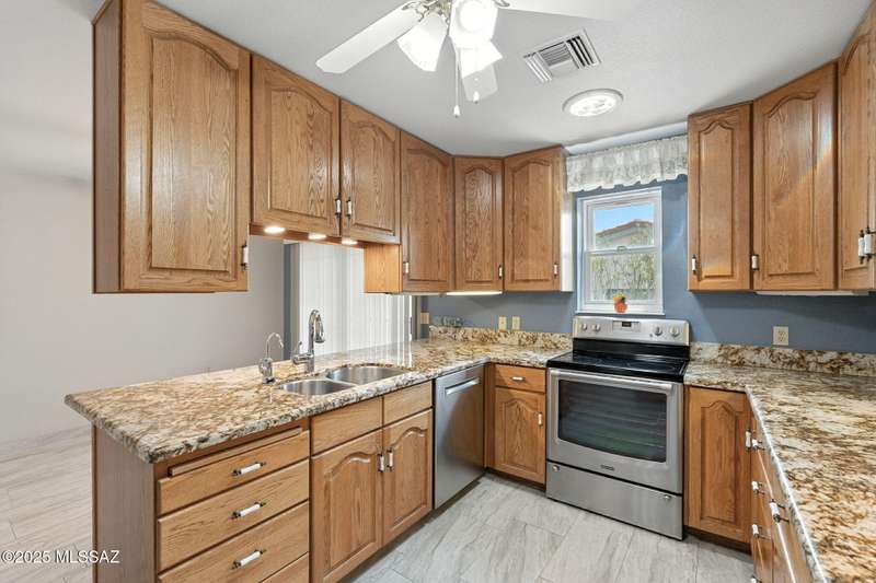 Welcome to this beautifully maintained 1924 sq ft home offering 2 bedrooms and 2 bath and a versatile office/den that can easily serve as a third bedroom, thanks to a conveniently located closet just outside the door. Designed for comfort and functionality, the layout includes a spacious dining room and a charming kitchen nook, perfect for morning coffee or casual meals.Enjoy peace of mind and low energy costs with owner owned solar, plus an extended 2-car garage for added storage or workspace. Outdoors you'll find two delightful fountains-one gracing the front yard and another in the backyard-creating a soothing atmosphere for relaxing and entertaining.Take in beautiful mountain glimpses from your outdoor spaces, adding a touch of scenic beauty to your everyday life. This home