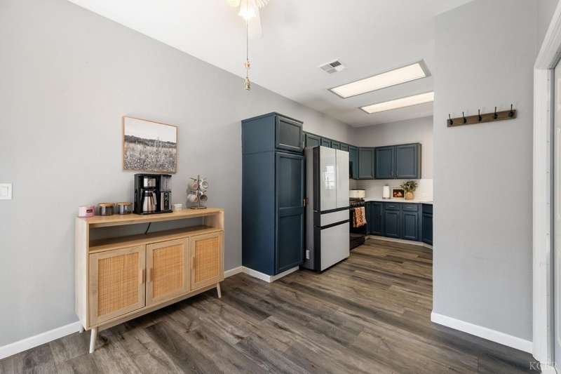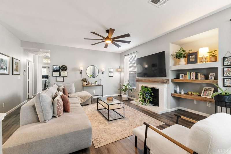 Step into this beautifully updated 4-bedroom, 2-bath home offering a fresh, modern feel throughout. The kitchen shines with new granite countertops, stylish cabinetry, and a comfortable eat-in dining area, while a separate formal dining room provides the perfect space for gatherings. Enjoy the look and durability of laminate flooring throughout, complemented by new interior and exterior paint and updated fixtures that elevate every room. The living area features a stunning fireplace accented with new tile and a sleek wood mantle, flanked by tasteful wood shelving that adds both charm and functionality. A large indoor laundry room offers extra convenience and storage. Move-in ready and thoughtfully updated, this home blends comfort and contemporary style in every detail. Come see it today! Bed and bath count is different than tax records, if important buyer to verify.