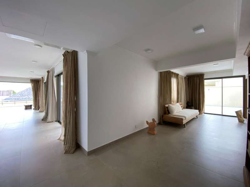 Magnificent 3 bedroom penthouse of 359 m2 offering living/dining room, 3 bedroom kitchen, one ensuite, open deck and covered balcony. The large terrace invites you to enjoy the magnificent sunsets. High quality services such as discreet 24/7 security, controlled access to the residence, large communal pool with sun loungers and parasols, underground parking and lift. Ocean Legend consists of 25 luxury flats, furnished on request. The Flibustine section, overlooking the beautiful tropical garden, consists of 18 flats of 1 to 3 bedrooms and 3 penthouses of 3 bedrooms, with breathtaking sea and mountain views. Their roof terrace overlooks this sumptuous panoramic view. Four lifts serve the whole residence.