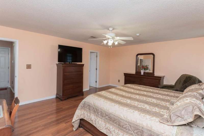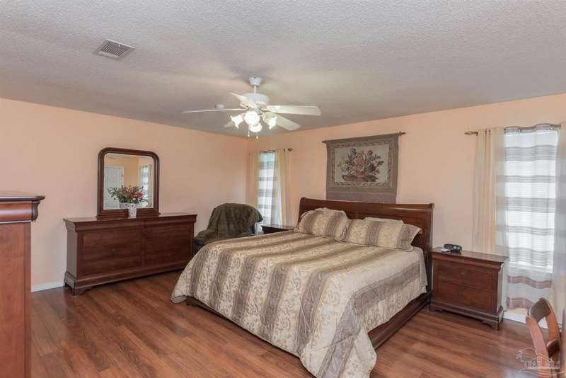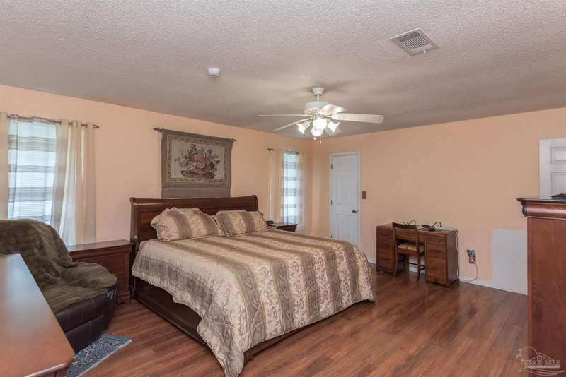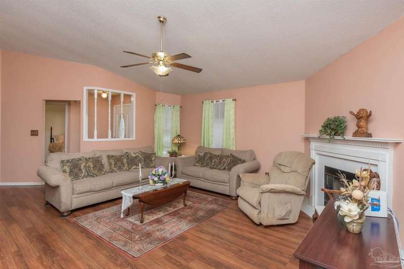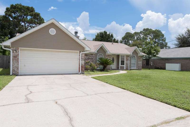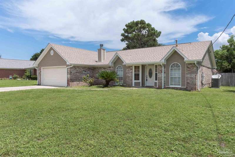 Back on the market! Seller not at fault. Very nice contemporary home in Coral Creek Subdivision. Open floor plan large master bath, double vanity, walk in closet, separate shower, and garden tub. Roof 2022, fireplace, newer A/C unit, tankless water heater and whole house water filter system. Fully fenced in yard. Great space for your pets to roam around or children's playground. Excellent location to most Bases in the Pensacola area and to the beach. Property is located in an x zone meaning not in a flood zone. Comes with a 1 year home warranty.
