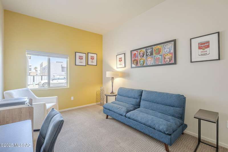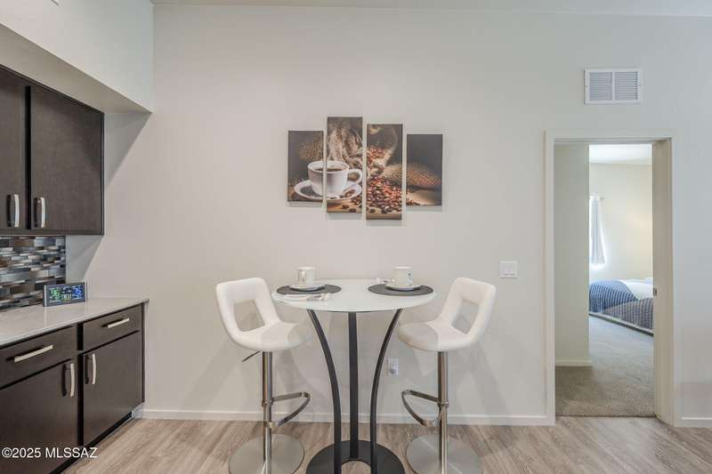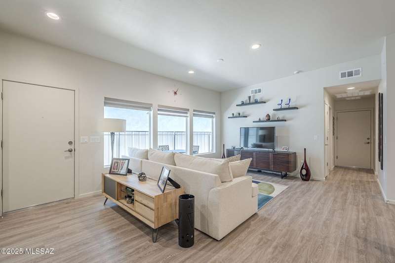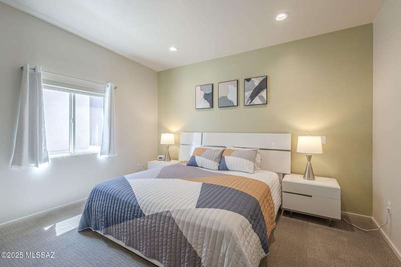 This home features an inviting and modern design, highlighted by elegant quartz kitchen counters that provide both beauty and durability. The kitchen is equipped with a gas range, complemented by stainless steel appliances. With three bedrooms and two bathrooms, there's plenty of room for comfort and privacy. Additionally, the home boasts a water softener system and a reverse osmosis system in the kitchen. The two car garage, with an epoxy coated floor, offers both functionality and a polished look. Outdoors, the covered patio is finished with brick pavers. This home combines practicality with modern amenities. Conveniently located near shopping, dining and a short drive away from U of A.