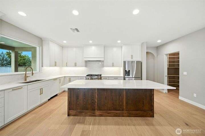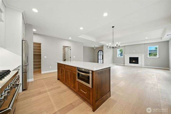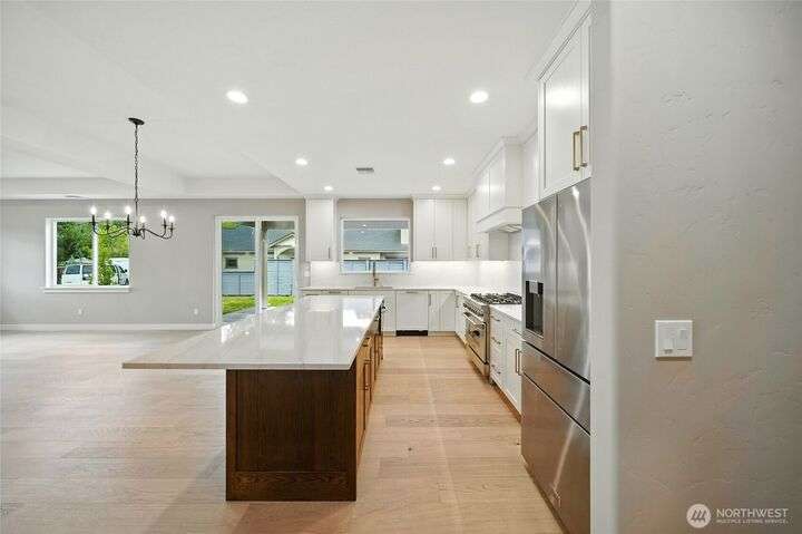 Luxury, style, and innovation define this single-level Stonecreek Custom Home. The kitchen features quartz countertops, abundant storage, and workspace, flowing into a great room with tray ceilings, a welcoming fireplace, and ample natural light. Thoughtful design includes a walk-in pantry, well-equipped laundry room, and mudroom bench leading to the garage. The private primary suite feels like a retreat. With 4 bedrooms (or use one as an office) and a 3-car garage—including a separate bay ideal for a studio or workshop—this home blends comfort and function beautifully.