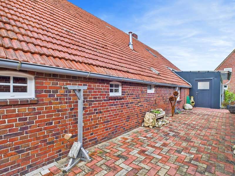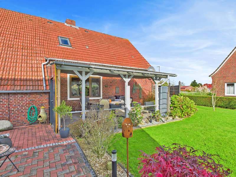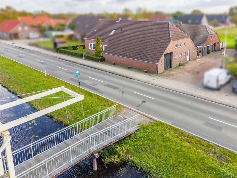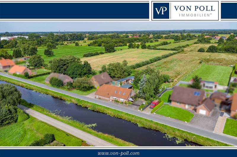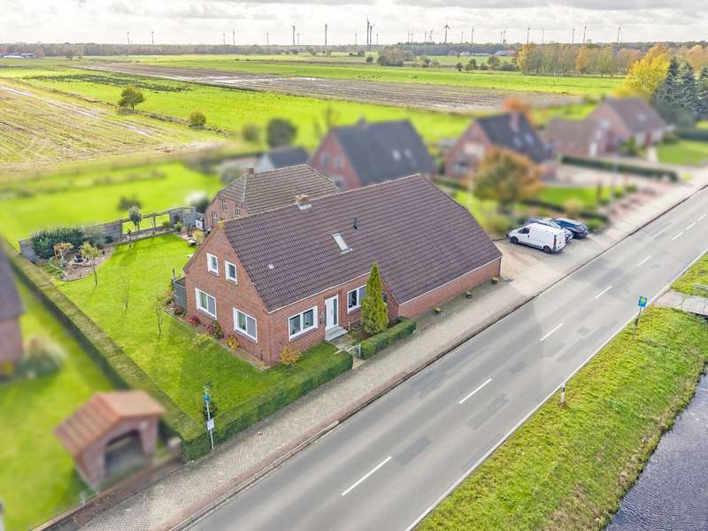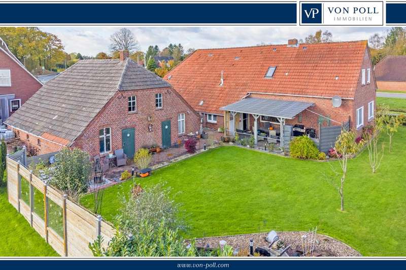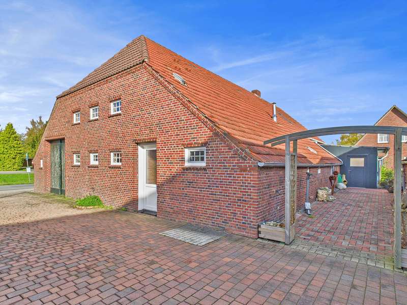 This charming Fehnhaus dating from around 1936 is idyllically situated on the Fehnkanal in Großefehn and combines the traditional character of a historic country house with the comfort of a modern renovation. The property has been extensively renovated in recent years, including the replacement of the windows, new floor coverings, the installation of a modern fitted kitchen, the renewal of the heating system and the entire electrical system. The result is a harmonious combination of rural charm and contemporary living quality. The house is divided into a cozy living area and a spacious barn area that can be used for a variety of purposes. On the first floor there is an inviting living and dining area, a bright kitchen, a bedroom, several flexible rooms, a bathroom and a separate WC. The spacious rooms create a pleasant feeling of living and offer numerous possibilities for use - ideal for families, hobby craftsmen or people who want to combine working and living under one roof. A spacious sleeping area with adjoining dressing room and additional living area awaits you on the upper floor. An extension reserve offers further potential to realize individual living ideas - whether as an additional bedroom, studio or cosy retreat. The barn area adjacent to the house has enough space for a workshop as well as parking space for cars or agricultural equipment. The offer is complemented by a separate outbuilding dating from around 1945, which offers two practical storage rooms and a further garage. There is a right of use for the garage in favor of the neighbor. A special highlight is the lovingly landscaped garden, which invites you to linger with its covered terrace. From here you can enjoy a wonderful view over the adjacent fields - a place where you can enjoy peace, nature and rural idyll to the full. This Fehnhaus combines historical charm with modern comfort in a unique way and offers a wide range of possibilities for individual use - an ideal home for all those who are looking for something special and love life in the countryside.