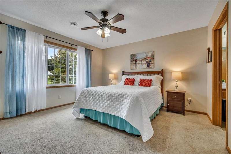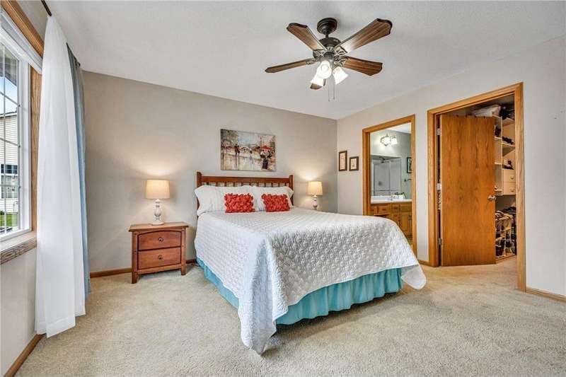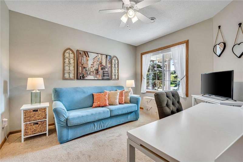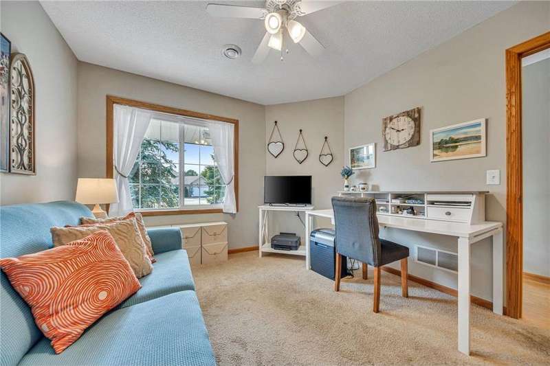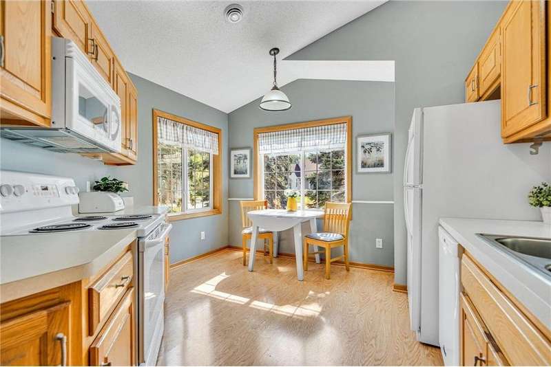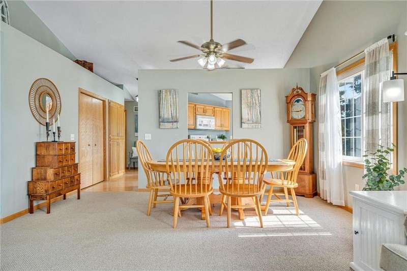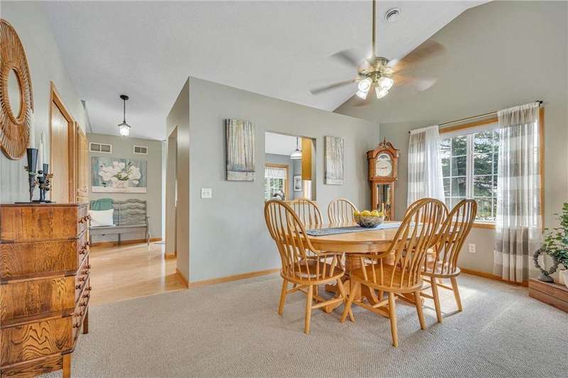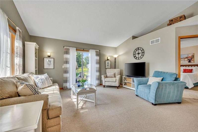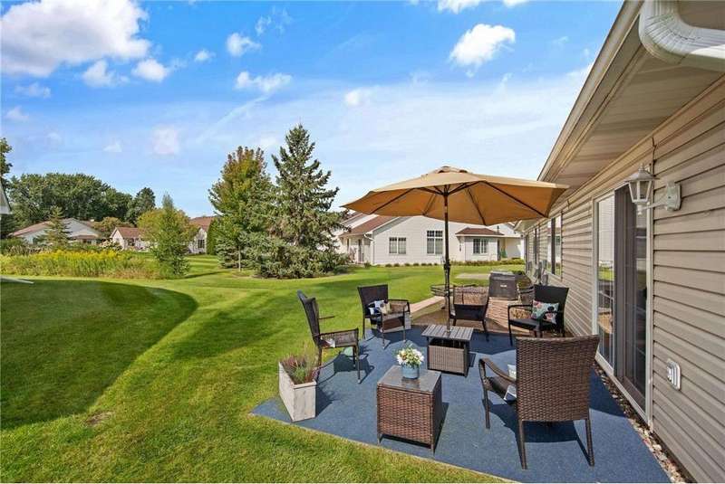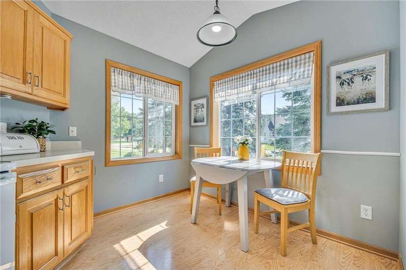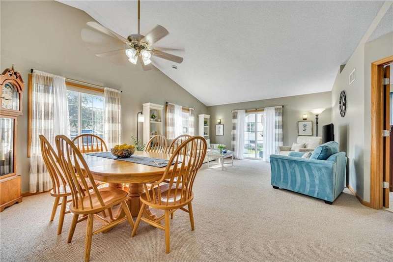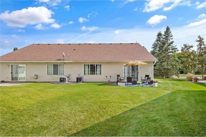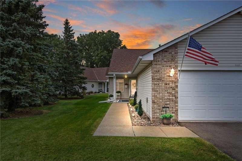Welcome home to this spacious and light-filled two-bedroom, two-bath townhome in the peaceful community of Circle Pines. From the moment you step onto the inviting front porch, you’ll feel the warmth and charm this home has to offer. Inside, the bright kitchen with an eat-in dining area flows seamlessly into a flexible dining space and living room with vaulted ceilings and large windows that fill the home with natural light. The owner’s suite features a walk-in shower and generous walk-in closet, while the second bedroom offers flexibility as a guest room, home office, or hobby space. The convenient laundry and utility room includes ample storage, and the oversized garage comes equipped with built-in cabinets for even more organization. Outdoors, the private back patio provides a peaceful spot to relax or entertain. Enjoy the ease of single-level living in a quiet neighborhood while still being close to shopping, dining, and parks.