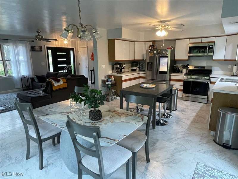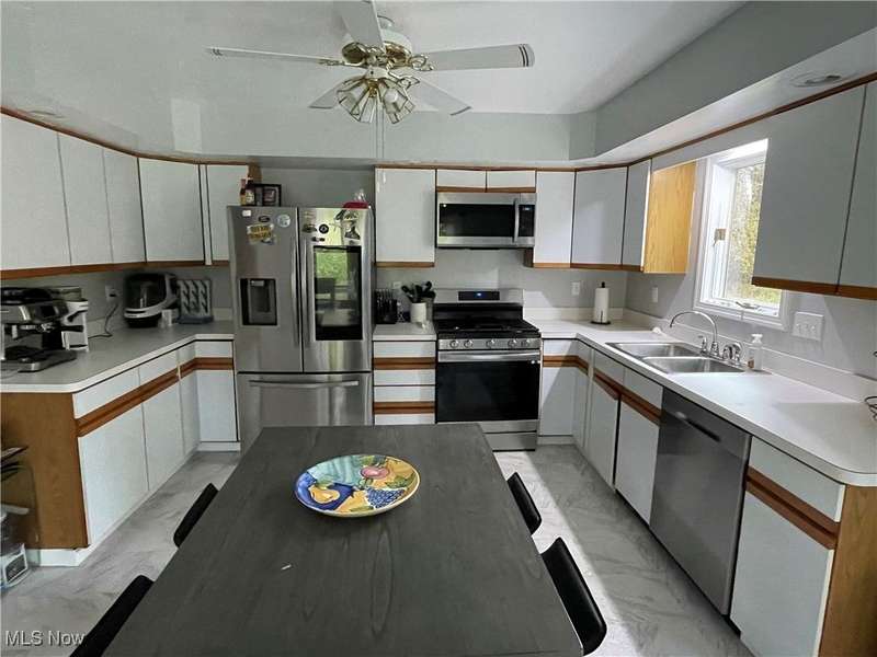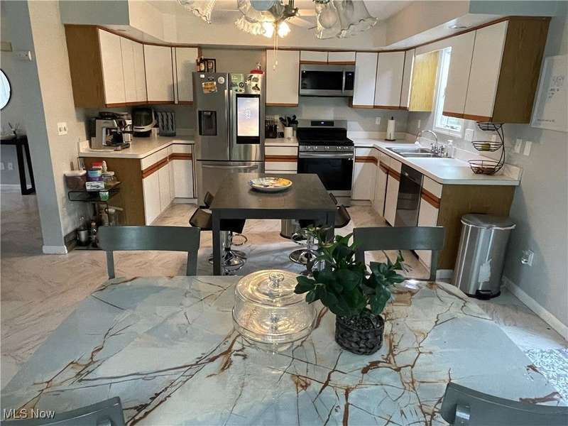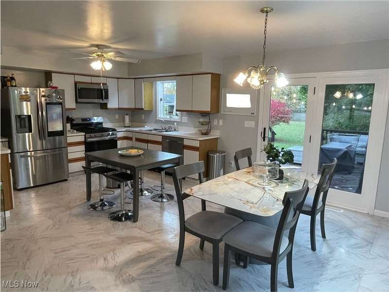 Welcome Home to this charming 3 bed, 2 full bath ranch home, located on a nice lot with wooded views! Freshly painted inside and out with new flooring installed throughout the living room, eat-in kitchen, hallway and main bath. The living room features a wood-burning fireplace. New stainless steel appliances in eat-in kitchen stay. Off the eat-in kitchen are doors that lead you out to your large deck overlooking your back lot that's big enough for a storage shed or she-shed or maybe even a pool? That possibilities are limitless! Brand new carpet in all 3 bedrooms. Your large master bath features his-and-hers sinks, a stand-up shower and separate tub. Off the master bedroom are sliding glass doors leading you out to the back lot - wouldn't this be a great spot for a hot tub, perhaps? Your laundry is located on the main floor, off your attached 2 car garage. The basement adds an extra 812 sq ft of space - a great space for storage or to turn into rec space/in-home gym, or both. Located close to I-480, the airport, RTA, Metro Parks, and all the shopping, dining and entertainment North Olmsted has to offer!