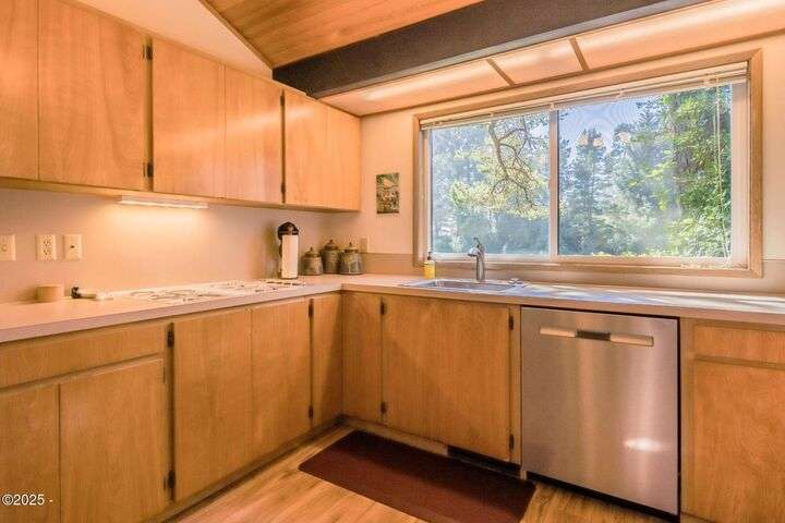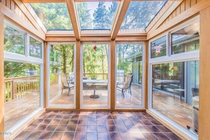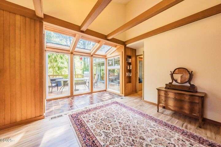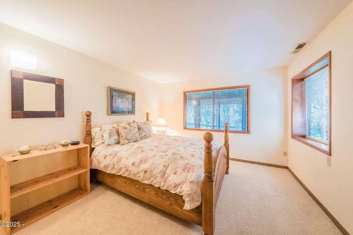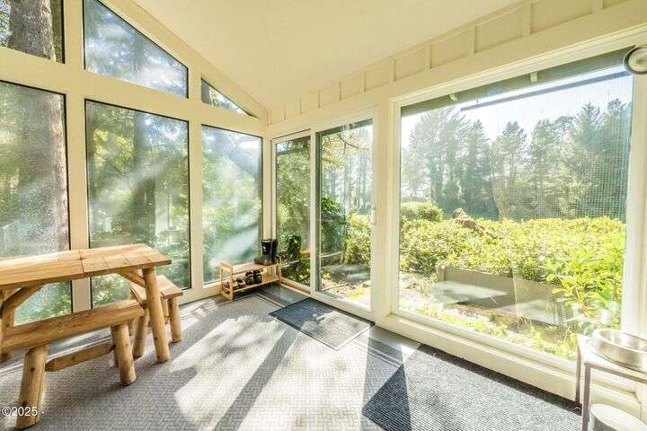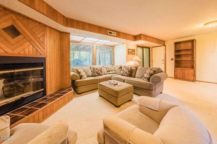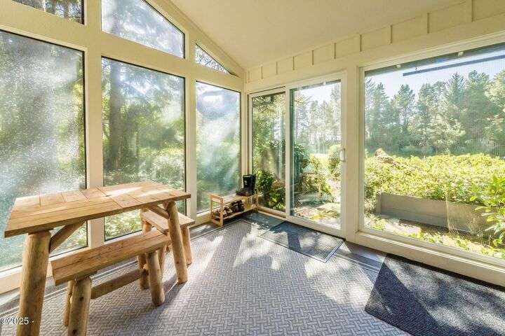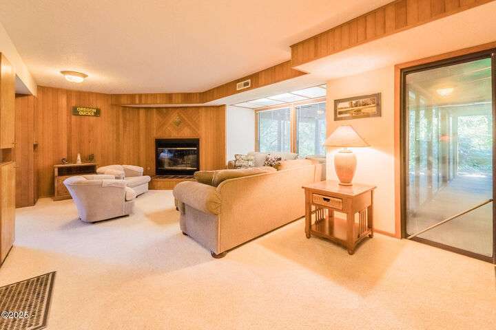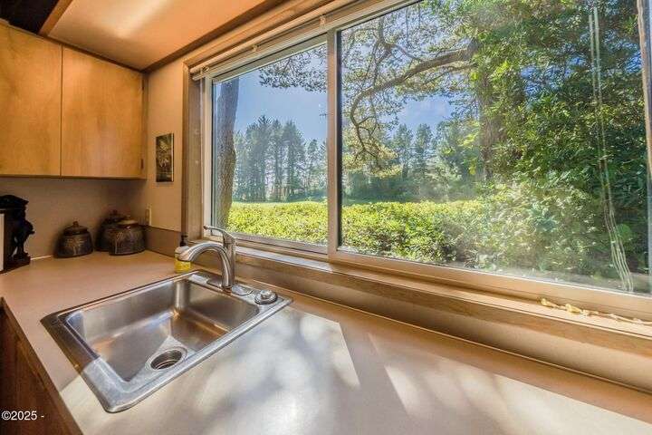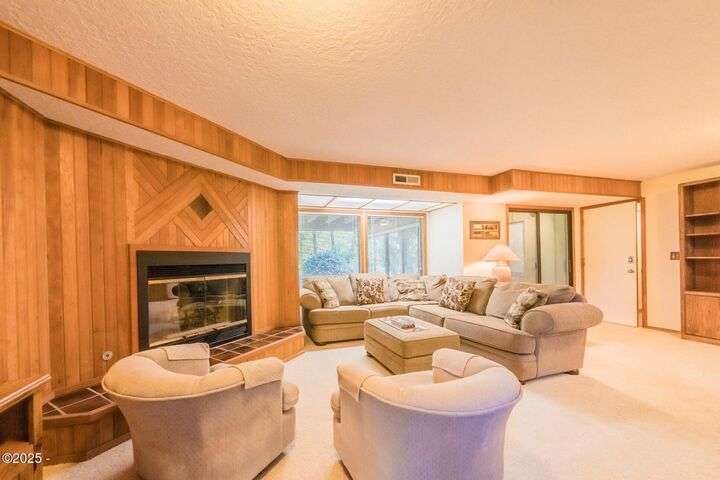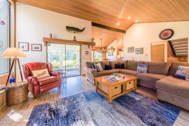 Salishan home nestled on the 17th & 18th Fairway close to the beach! This split level design features all main level living with gas fireplace, natural wood interior & open dining & living area with access to large private deck. Primary bedroom w/ sitting area & gas fireplace with deck access. Sunroom off dining area, opens to west side patio. Upper level has a reading nook/den lots of storage. The lower level has 2 bedrooms, extra bunk room, 2nd living area w/ wet bar, additional wood burning fireplace w/gas starter & access to large fenced in yard. This home has 2 utility rooms, 1 w/ sink & attached storage area off garage. First time on market, this home is perfect for multi family living with room for everyone, including your ''furry family members'' with fenced in yard! Salishan is an oceanfront gated community with beach & bay access, outdoor tennis courts, small boat launch & community center w/ outdoor seasonal pool. Close to Salishan Marketplace & shopping. Apprx 99 miles to Portland.