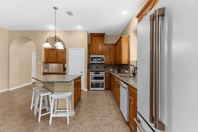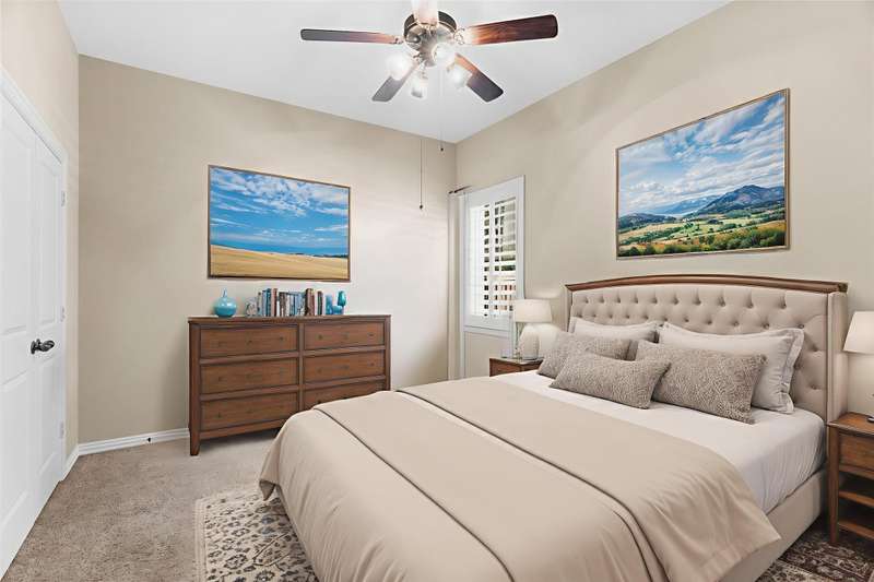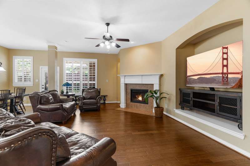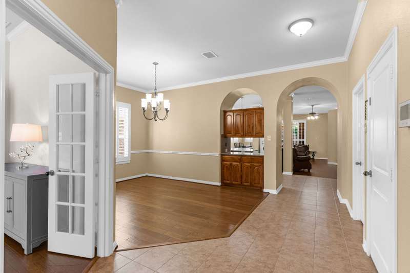 Welcome to Cypress Crossing of Fairview, where timeless design meets modern comfort. Nestled in a quiet cul-de-sac adjacent to a serene greenbelt, this David Weekley patio home offers the perfect balance of luxury, low maintenance, and connection to nature. Step inside and feel the calm sophistication of hardwood floors, plantation shutters, elegant chandeliers and crown molding that set the tone for every gathering. The open floor plan is designed for effortless living, where the living rooms gas ceramic log fireplace invites relaxation and recessed lighting can be dimmed to create the perfect ambiance. The gourmet kitchen is designed for a home chef, featuring granite, oversized island and abundant cabinetry. The Cafe appliances are highlighted with brushed bronze hardware and include a 6-burner gas cooktop, two ovens with bake, air fry and convection options, French door refrigerator and dishwasher, all make entertaining both easy and elegant. The private office with French doors overlooks blooming crape myrtles, offering a tranquil space to work or create. The formal dining room can flex as a reading retreat or intimate lounge, the possibilities are endless. The primary suite has a seating area bathed in natural light and spa-inspired bath with a soaking tub, walk-in shower and generous closet and separate coat closet. Outside, the covered patio and landscaped flower beds burst with color, surrounded by native plants that invite butterflies and hummingbirds, designed for serene mornings and peaceful evenings and minimal maintenance for a lock-and-leave lifestyle. Just beyond your doorstep, enjoy a nature trail, park and playground, ideal for morning walks, bike rides, or quiet reflection. Cypress Crossing offers a quiet yet active community, where neighbors stroll with their pups and sunsets paint the sky in soft hues. Luxury, comfort, and connection in one perfect retreat. Hurry and make your appointment today to enjoy the new year in your new home.