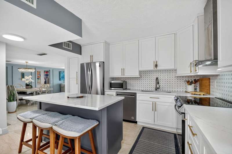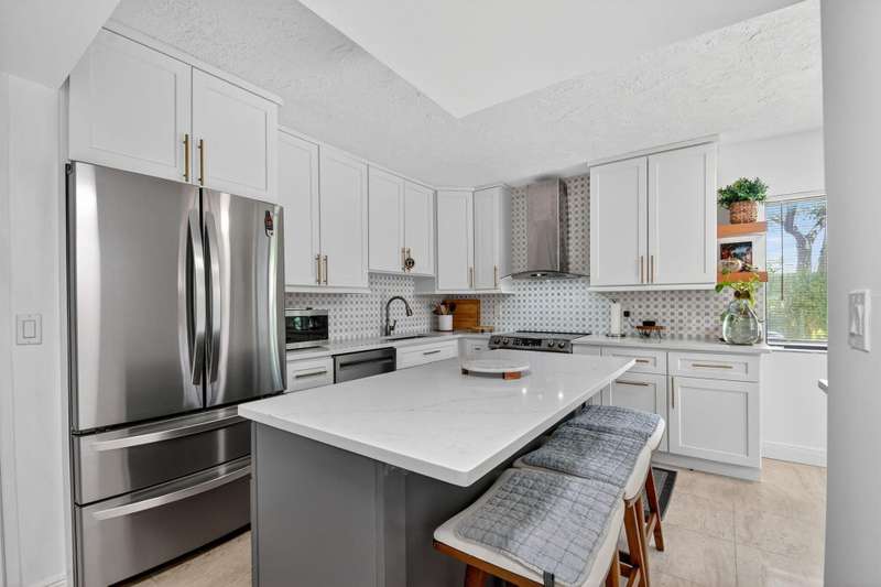 Welcome to this stunning home that blends modern elegance with comfort & style. From the moment you step inside, youll be impressed by the fabulous open floorplan, At the heart of the home is a gorgeous European-style kitchen, featuring quartz countertops, rich wood cabinetry, stainless steel appliances, & full tile backsplash that adds a touch of sophistication. The homes interior is enhanced by beautiful tile flooring throughout the main living areas, while the bedrooms are finished w/ warm laminate flooring for added comfort. Retreat to the primary suite, showcasing a luxuriously renovated bath with a seamless glass-enclosed shower, spa tub, & dual sinks. 4 patios-perfect for entertaining or relaxing with a cup of coffee or glass of wine! Call today to view your new Home!