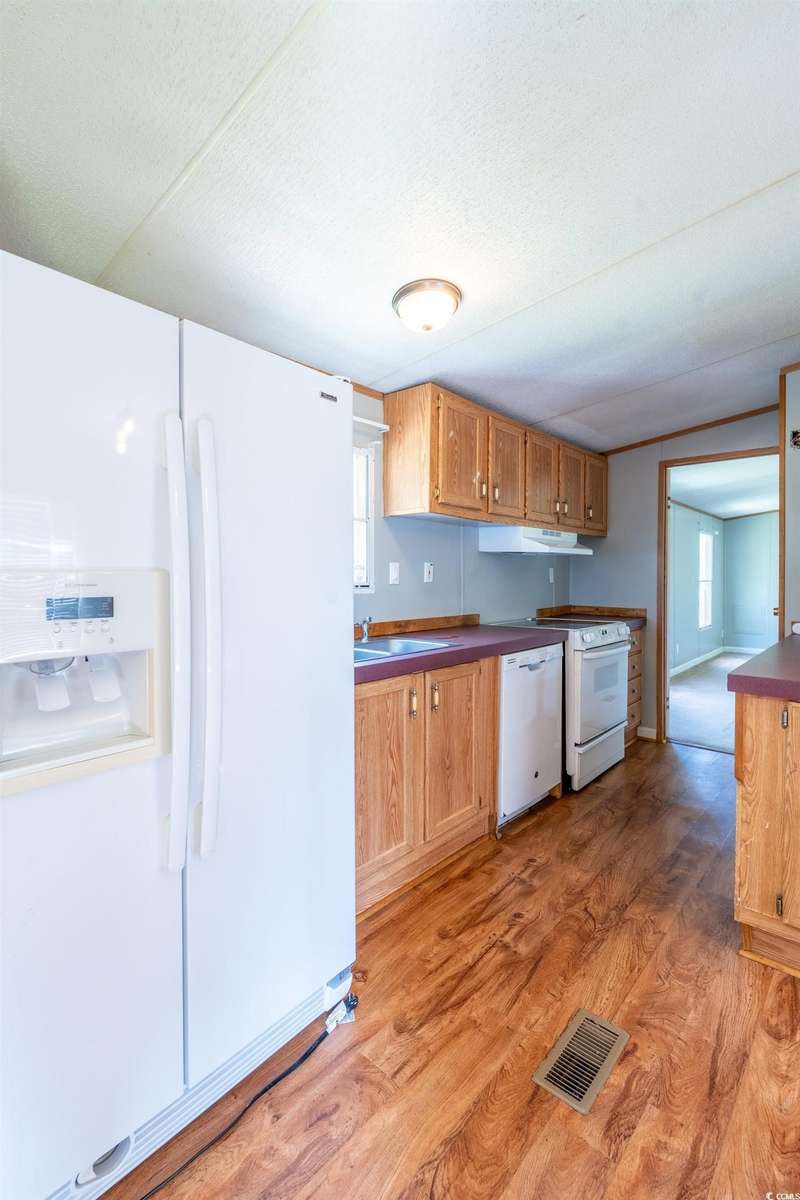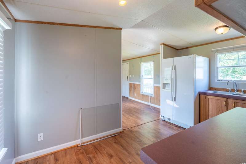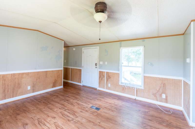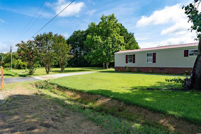 NO HOA - Room to build - 3 bedroom/2 bath home situated on over 3/4 acre of land. You will be 10 minutes from downtown Conway and 25 minutes to the sandy beaches of the Grand Strand. Inside you will find an open, roomy living & kitchen space. A split floor plan brings the master bedroom into a privacy stay from the two additional bedrooms. The master presents with oversized closet space and an ensuite bath with brand new flooring. Laundry area off kitchen and W/D conveys. There is a storage building on property for all your outdoor tools and toys. Several front windows and the storm door are brand new. The kitchen cabinet doors will need repaired or replaced. The sheetrock will need repaired in several places inside the home. All of these repairs are taken into consideration with the current pricing. This is a property that has great country home vibes with so much potential. Schedule a showing today.