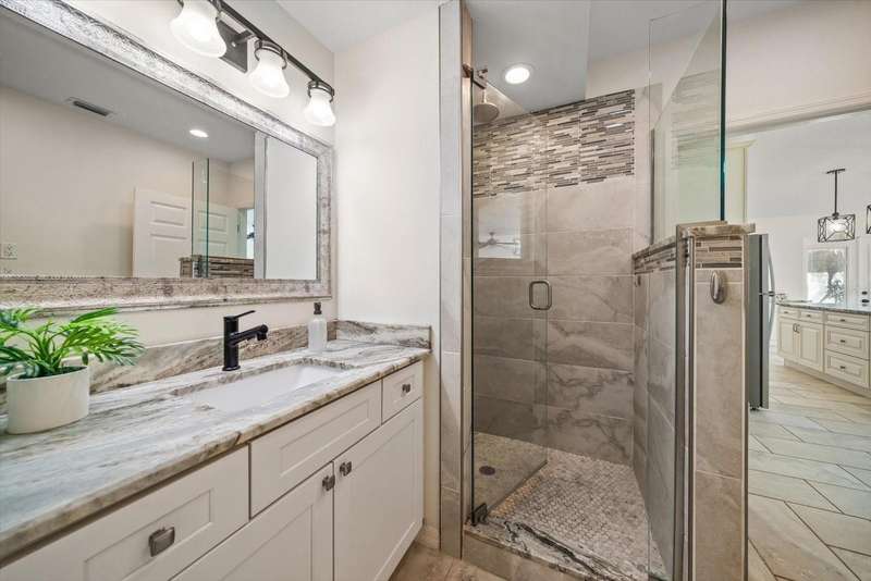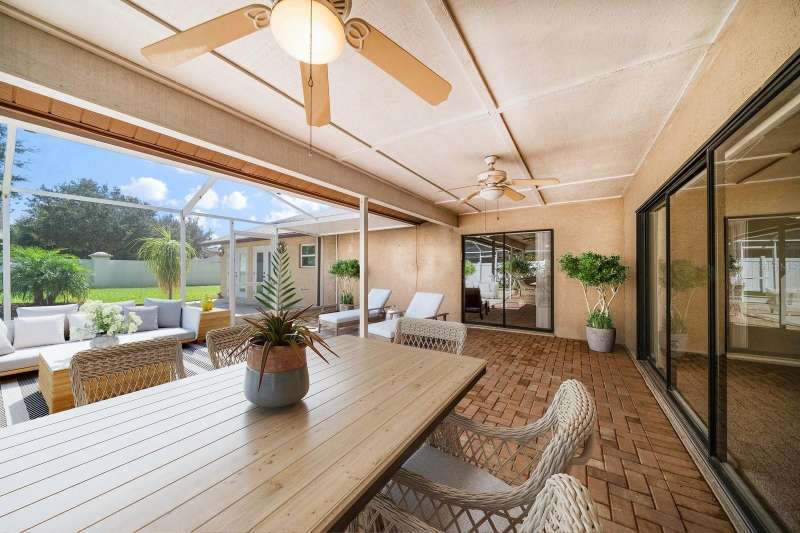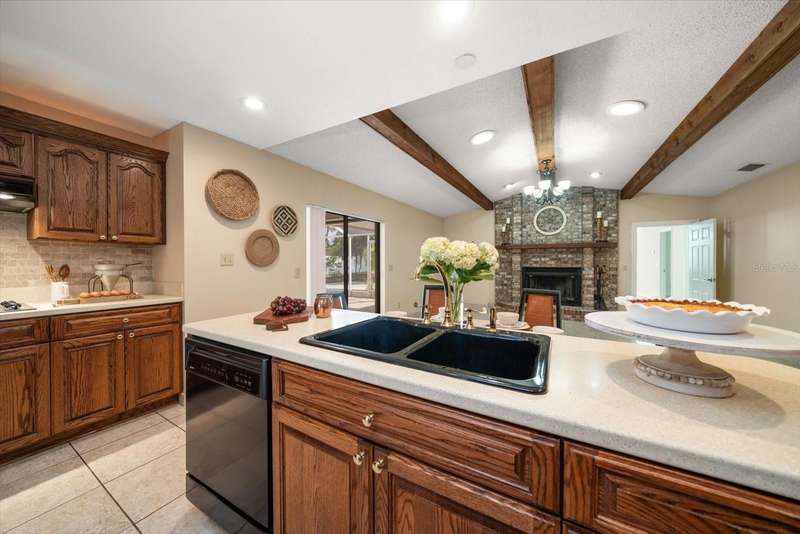 One or more photo(s) has been virtually staged. Don’t Miss This Rare Opportunity in Valrico Oaks! Welcome to this beautifully unique estate in the highly desirable Valrico Oaks community, offering unmatched flexibility and space for today’s lifestyle. Whether you’re looking for a true in-law suite, multi-generational setup, or private guest quarters, this home delivers—with TWO full kitchens, TWO living areas, and dual laundry spaces! With a flexible layout that can function as 5 bedrooms and 3 full baths or 4 bedrooms plus a home office, this home adapts to your needs. Sitting on an oversized lot, it offers both space and charm, blending thoughtful design with classic Florida living. Enjoy peace of mind with a new roof (May 2024) and dual-zoned A/C systems (2022 & 2014)—a testament to the home's excellent maintenance and solid construction. Step into the inviting paved courtyard and take in the lush landscaping and charming front veranda—a perfect spot to sip coffee or catch up with neighbors. Inside, soaring vaulted ceilings and open formal living and dining rooms create a spacious feel, while large sliding doors flood the space with light and offer easy access to the backyard. The split floor plan features a large primary suite with lanai access, a walk-in closet, and a generously sized bath. The main kitchen overlooks the heart of the home and opens to a cozy great room with a brick fireplace—ideal for family gatherings and entertaining. The standout feature? A custom full-suite addition with its own kitchen, great room, bedroom, bathroom, private laundry, and backyard access—perfect for guests, extended family, or entertaining. Additional highlights include: main and in-law laundry rooms, two-car garage with workspace, screened lanai, spacious paved patio on an extra-large backyard with room to relax or play. This one-of-a-kind property combines space, functionality, and character in one of Valrico’s most beloved neighborhoods. Homes like this don’t come around often—schedule your showing today!