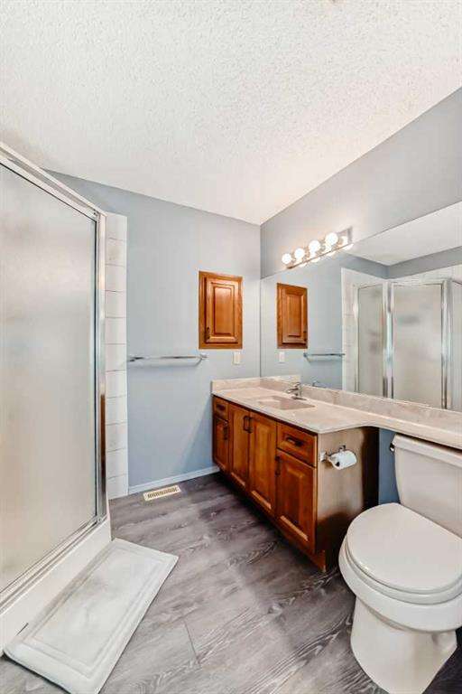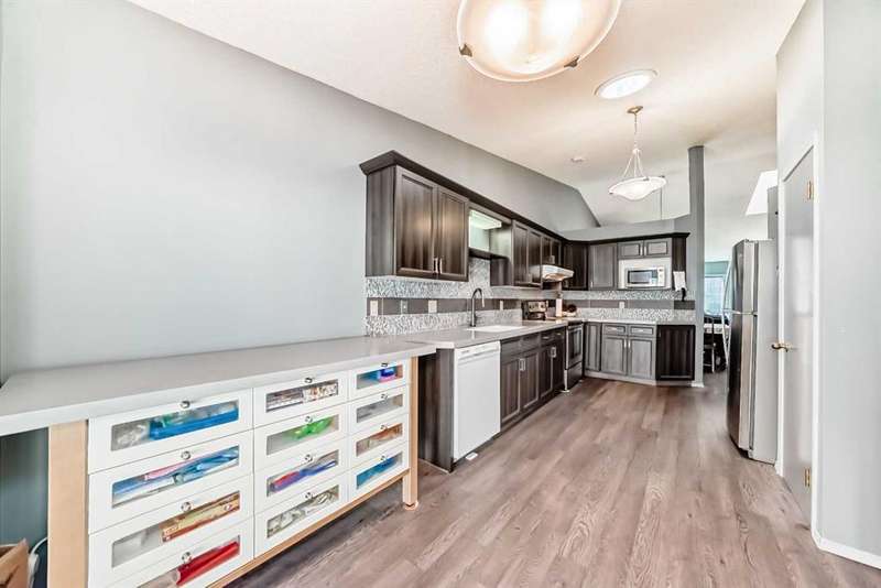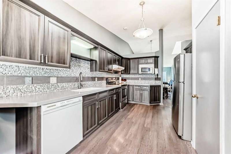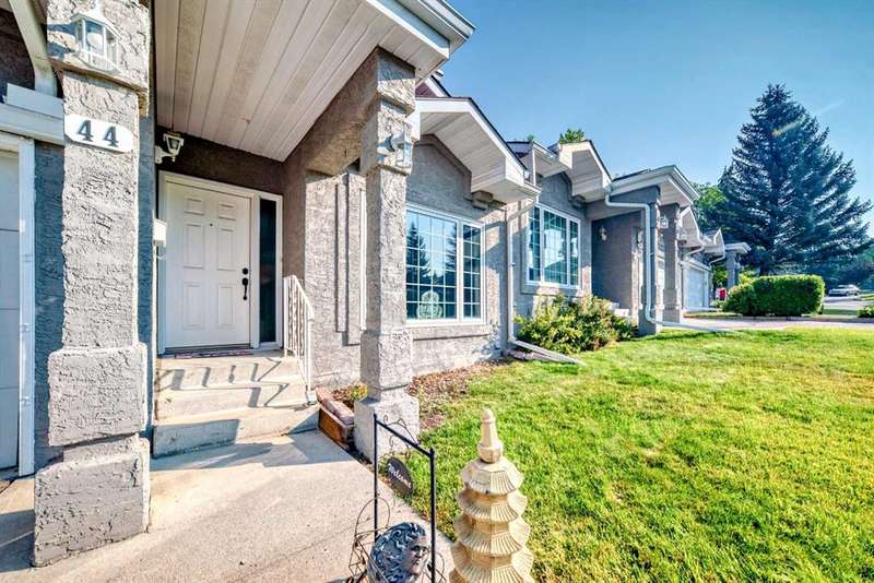**OPEN HOUSE SATURDAY SEP 27th 1:00-3:00pm** Charming Bungalow Villa with Endless Storage & Prime Location! This rare end-unit bungalow villa offers the perfect blend of convenience, comfort, and style. Featuring 2 bedrooms, 3 bathrooms, and vaulted ceilings with a skylight, the open main floor is bathed in sunlight. The functional kitchen leads to a large back deck, ideal for morning coffee or evening relaxation. A wood-burning fireplace in the living room adds warmth and charm, while the dining area makes entertaining a breeze. Designed for effortless living, this home has main floor laundry, a double attached garage, and air conditioning for year-round comfort. Recent updates include new main floor windows and doors (2017-19) and extra attic insulation for energy efficiency. Storage will never be an issue—this home has more than you could ever need! Located in a well-managed and maintained condo community with no age restrictions, this home is perfect for those seeking single-floor accessibility or a fantastic opportunity for families and first-time buyers. Enjoy the convenience of being minutes from shopping, schools, downtown, and the ring road, offering quick access to anywhere in the city or a weekend getaway to the mountains. Come see the potential and make this beautiful home yours today!