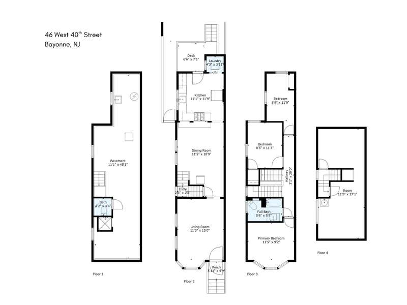 Welcome to 46 West 40th Street, the most charming single-family home on the market today. Brimming with character, this four-bedroom gem features original hardwood floors, detailed millwork, and a stained-glass window that sets the tone for its timeless style. From the moment you walk in, you ??ll feel the warmth and history blended perfectly with modern updates. The main level offers a cozy living room, a formal dining room, and a renovated kitchen with bar seating, laundry, and direct access to the backyard deck and patio. Upstairs you ??ll find three bedrooms and a full bath, while the fully finished top floor adds two versatile bonus rooms, perfect for a primary suite, office, or family lounge. The basement includes a full bathroom and is nearly finished, giving you even more space and flexibility. Parking is included for added convenience. What truly sets this home apart is its unbeatable location. Homes this close to Horace Mann Elementary School are incredibly hard to find and this one sits just one block away, in one of Bayonne ??s most sought-after districts. You ??re also only a few blocks from the 45th Street Light Rail, making for an effortless commute into New York City. Half a block from Broadway, you ??ll enjoy the convenience of caf s, restaurants, and shopping right at your doorstep, while the 100-acre Hudson County Park with its trails, playgrounds, and waterfront views is only minutes away. With Bayonne developing rapidly and appreciation climbing year after year, this home offers not only charm and space, but also the kind of location buyers dream of. Don ??t miss your chance to be part of Bayonne ??s exciting future. Make your appointment today!
