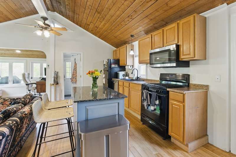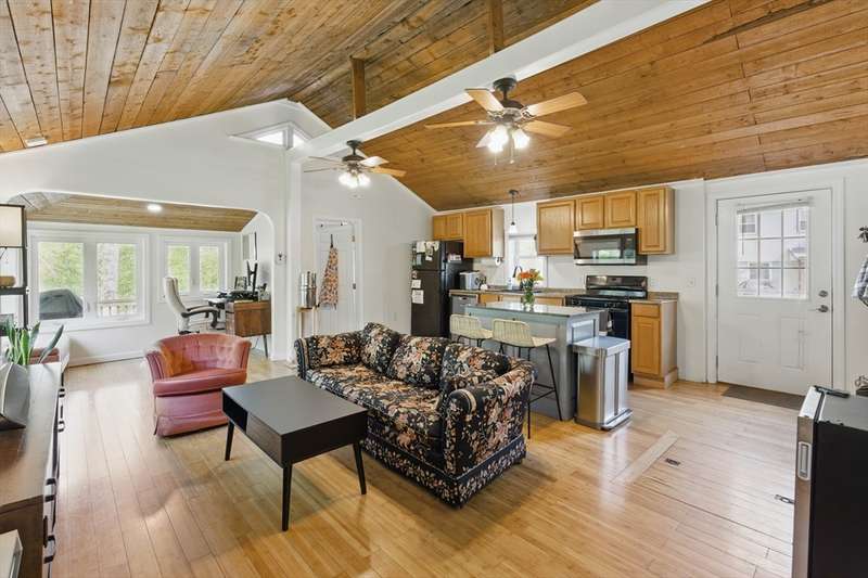 CHARMING NORTH BILLERICA SETTING! Nestled along the picturesque Concord River, this delightful home offers the perfect blend of charm and tranquility in a quiet, sought-after neighborhood. Enjoy serene water views from multiple rooms and relax in your private yard surrounded by lush greenery and soothing river sounds. The cozy layout features sun-filled living spaces, 2 bedrooms, and 1 bath, complemented by bamboo flooring and tasteful updates, including but not limited to newer roof, tankless boiler and windows. The kitchen includes modern appliances and is a part of the open floor plan with cathedral ceilings—ideal for entertaining. Step outside on the newer deck and side yard with direct river access, perfect for kayaking, fishing, or simply enjoying nature. Located near shopping, dining, and major routes, yet tucked away for peaceful living.