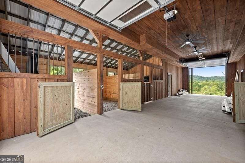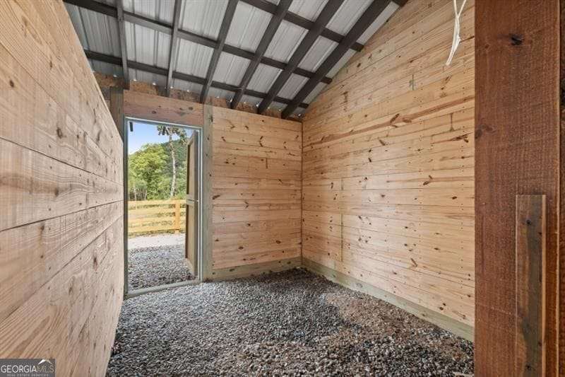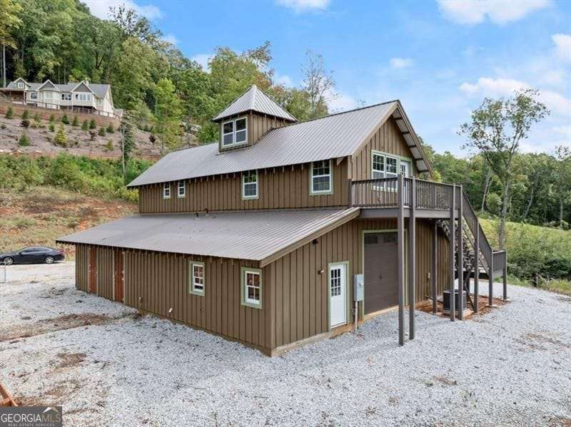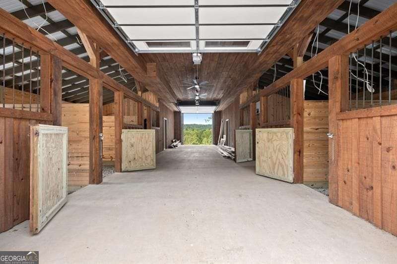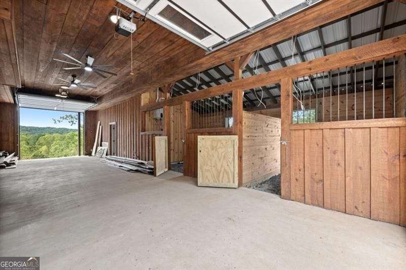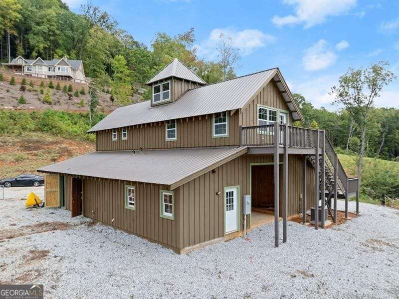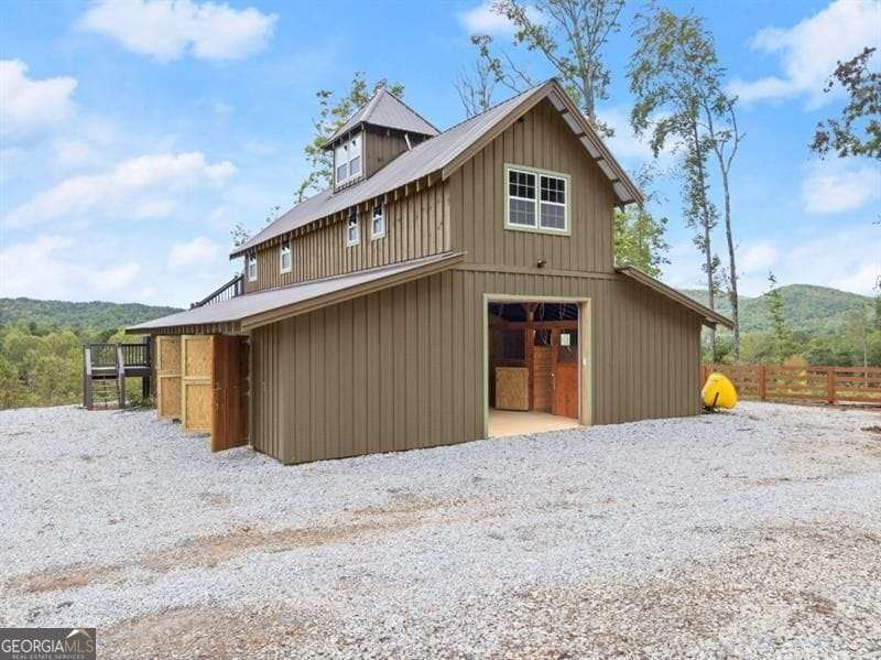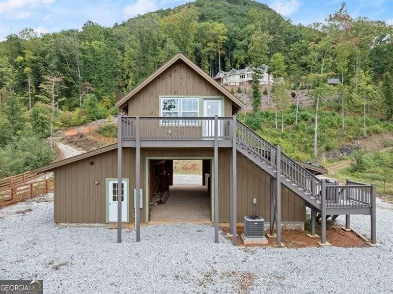 Wishing for mountains and horses just 90 minutes from Atlanta? Wish no more! Almost seven acres of Tiger Mountain have come to the market! Located off of Bridge Creek Road-12 minutes from Lake Burton and 12 minutes from Clayton shopping and dining- this mountain oasis offers views of pristine land maintained by the US Forest Service. Measuring over 4000 sq feet of new construction this horse barn boasts a bunk room below and private living space above. Best yet, the almost 7 acres of FULLY FENCED land has been partially cleared for future building. The upper living area offers 1 bedroom, 2 full baths, full kitchen, laundry and view to ponder from a birds-eye loft hideaway that is big enough for a queen bed. The main level features 5 horse stalls, tack room, kitchen, laundry, full bathroom and sleeping space for four. The current parking area is large enough for boat or mobile home parking. Live and play here- just minutes from what could be momorable lake adventures. Come create your home or home- away-from-home in North Georgia.