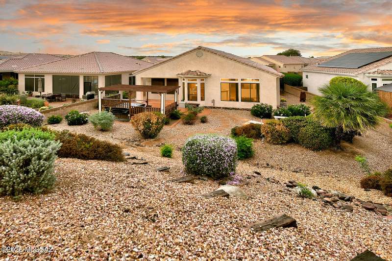 Original Owner 2,000+ sqft Home in the GATED & HIGHLY DESIRABLE Sunrise Pointe Vistas Neighborhood Perfectly Situated on a LARGE LOT & QUIET Dead-End Street! Well Maintained & Absolutely Stunning ''Light & Bright'' Move-in Ready, SINGLE STORY Home has 2 Bedrooms, 2 Baths, Office/Den, and a 2 Car Garage with Space for your GOLF CART. No Interior Steps. Family Room with a COZY fireplace adjacent to your Spacious Cook's Kitchen. High Ceilings and GORGEOUS New Flooring THROUGH -OUT. Owner's Suite with DUAL Vanities, Garden Tub, & two Walk-In Closets. Newer HVAC & Solar Screens on ALL Windows. NEW ROOF to be Installed! Inviting OVERSIZED Backyard with a BRICK PAVER Patio, SOOTHING WATERFALL/FOUNTAIN, a Gazebo & HOT TUB make this a TRUE SANCTUARY! This is a 55+ & GVR Community. WELCOME HOME!