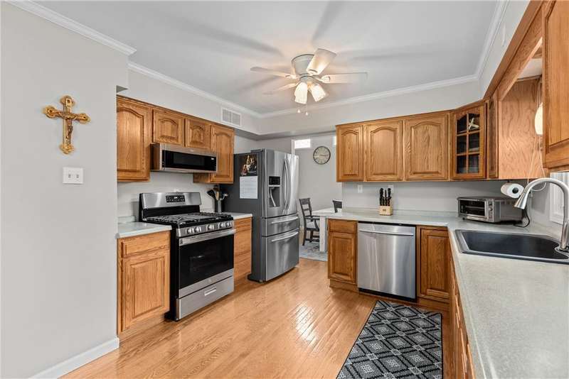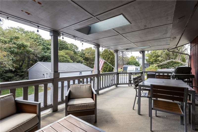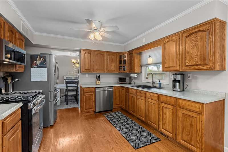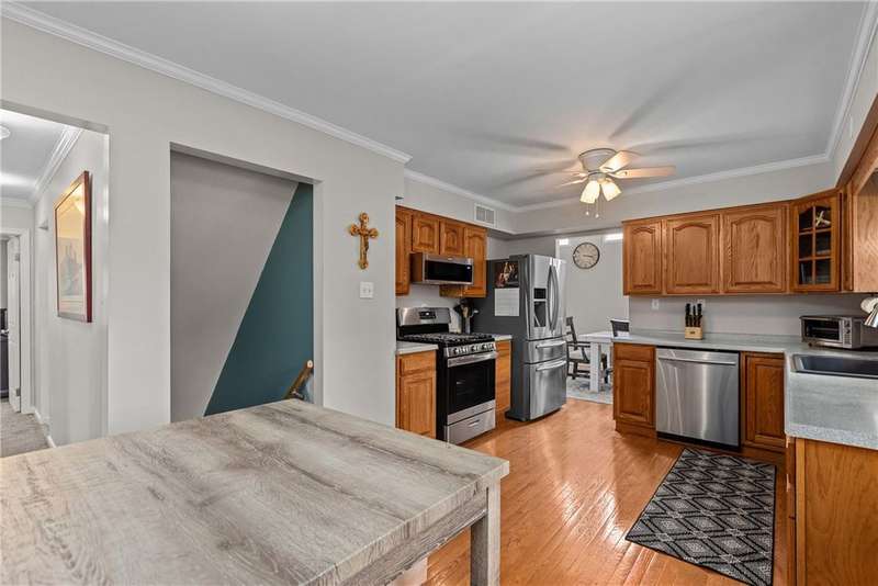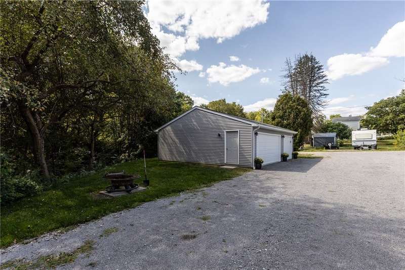 True Raised Ranch w/ Dream Garage Space & Private Setting! Tucked at the end of the road & backing to the woods, this beautifully updated raised ranch offers the perfect mix of style, comfort & functionality. The main level showcases gleaming hardwood floors, a stunning cathedral ceiling that floods the home w/ natural light & an inviting eat-in kitchen. Two full baths include a recently updated main bath for modern convenience. The finished lower level?previously used as a primary suite?now provides flexible living space to suit your needs. You'll also find a proper laundry room w/ shelving & storage, plus an additional storage room. Garage options include: an integral one-car garage plus a finished three-car detached garage complete w/ heat and electric! Outdoor living is just as impressive with a huge covered deck featuring skylights, a fenced-in yard & a large driveway for plenty of parking. This home is beautifully maintained, thoughtfully updated & move-in ready!