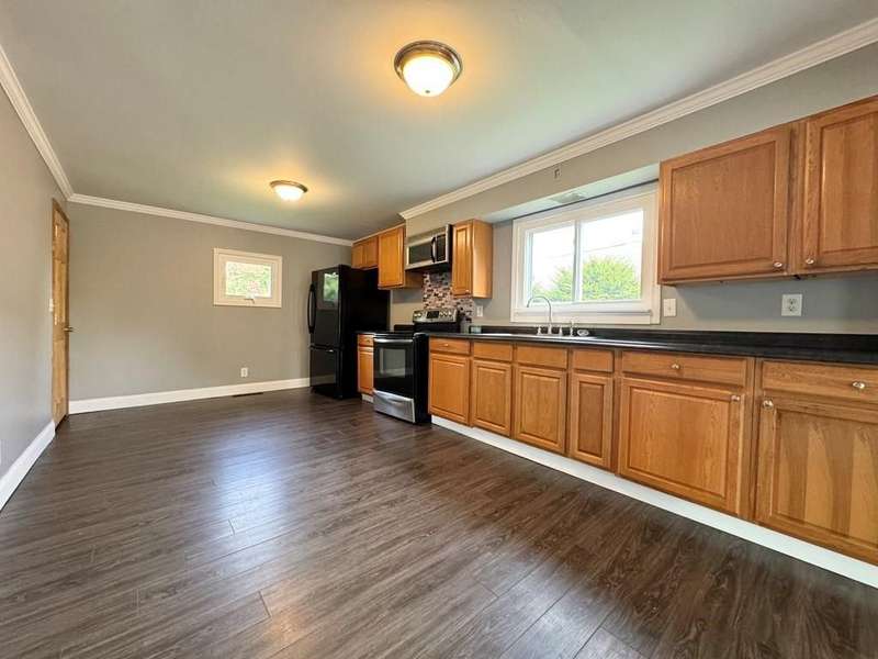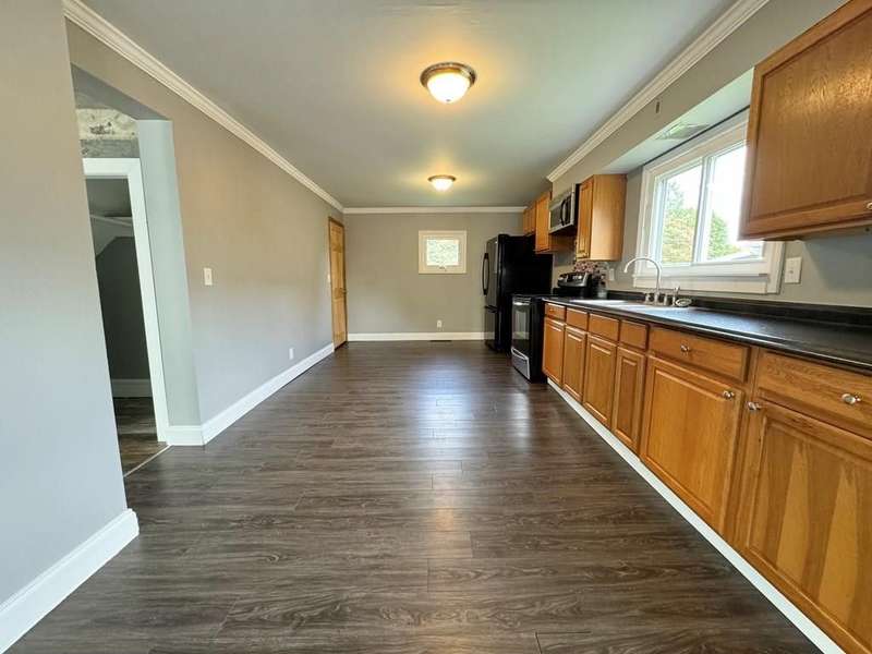 Here is a 3 bedroom, 1 full bath, 2 story home with just under 1000 finished sq ft. Very large kitchen with crown molding and tons of cabinets, nice formal dining room, new flooring and all 3 bedrooms are on the second floor. This home has a newer roof and is priced to sell!