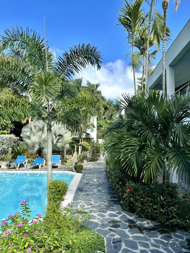 The cozy and well-designed complex features a wonderful lap pool and a tropical garden with exotic plants and is only a few minutes away from Cabarete, the surfing capital of the Caribbean.