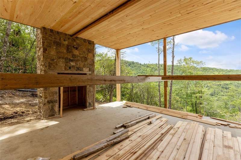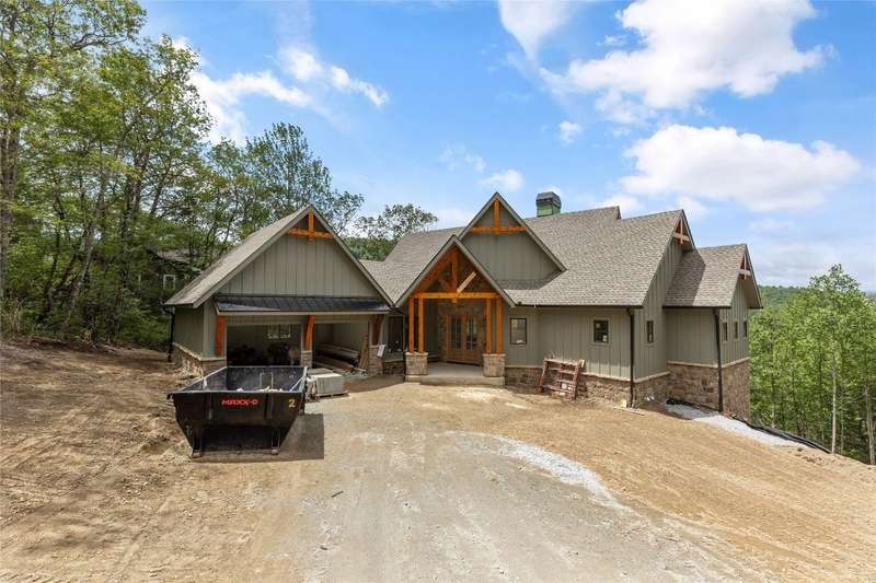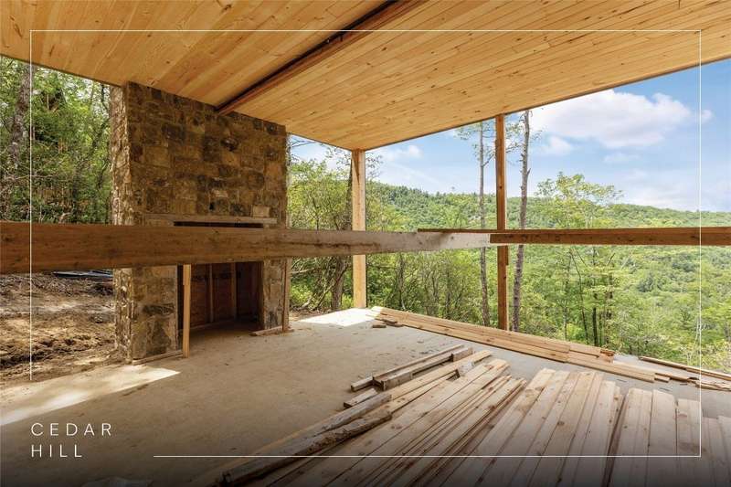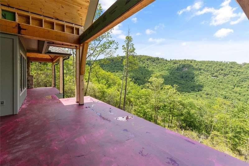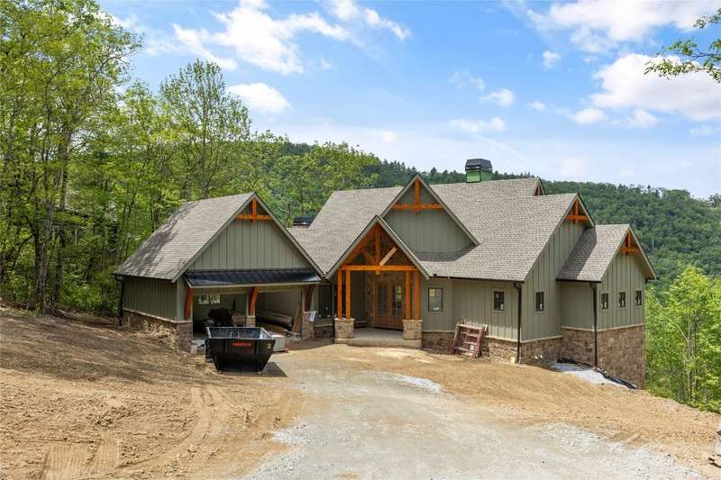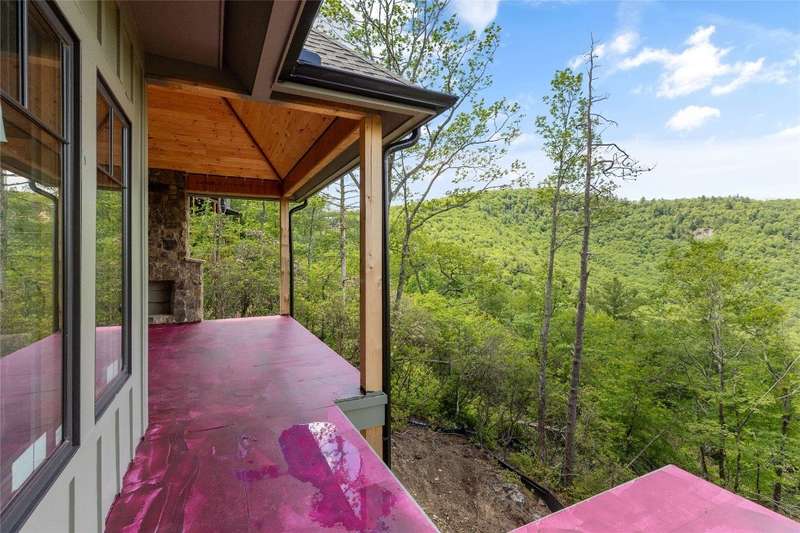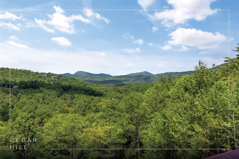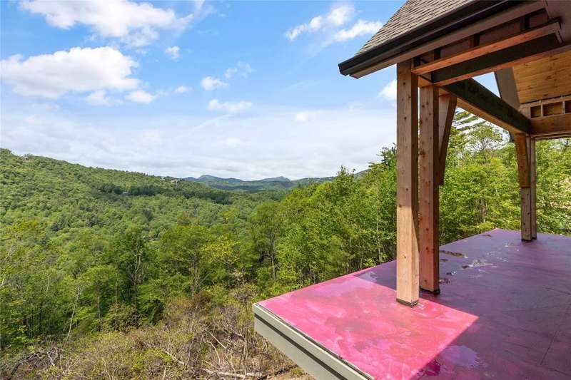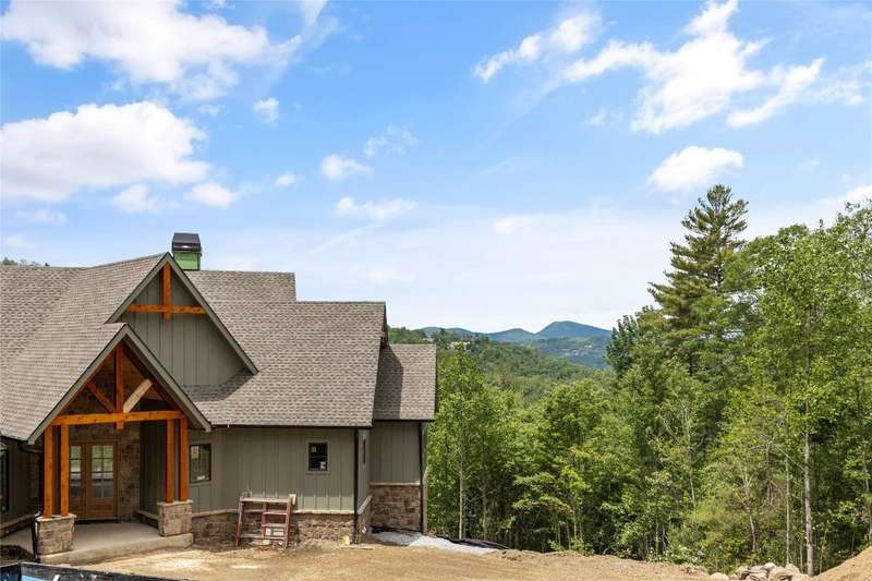 This newly constructed, custom designed residence is nearing completion in Cedar Hill, one of the Highlands Cashiers Plateau's most desirable gated communities. Perfectly situated just minutes from both Cashiers and Sapphire, this thoughtfully crafted home offers a fresh architectural approach and a seamless floor plan designed for luxurious yet comfortable mountain living. As you arrive, curated landscaping, clean architectural lines, and a welcoming presence set the tone. Expansive windows and glass doors fill the interior with natural light and frame sweeping views across the valley, with Big Sheepcliff mountain rising as a dramatic backdrop. The main level features an open living area with soaring vaulted ceilings and a striking stone fireplace, seamlessly connected to the chef's kitchen and adjacent gathering spaces-ideal for both entertaining and everyday living. Two distinct outdoor living areas extend the main level. A screened covered porch with a wood burning fireplace allows for year round enjoyment, while a separate covered veranda deck offers a serene space to relax and take in the cool mountain breeze. The primary suite on the main level is spacious and elegantly appointed, offering privacy, comfort, and convenience. On the lower level, a generous family room with a wet bar opens to two additional covered decks-one featuring another wood burning fireplace-creating the perfect setting for guests to gather and unwind. This level also includes three guest bedrooms and a dedicated bunk room, providing ample accommodations for extended family and friends. A two car garage adds architectural character and everyday functionality. For those seeking a brand new mountain retreat in a well established and private community, this home offers timeless design, panoramic views, and the best of life on the Highlands Cashiers Plateau.