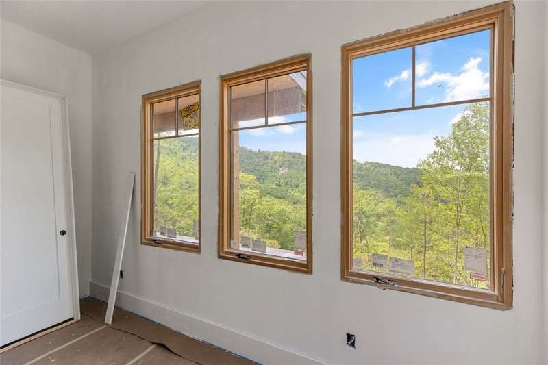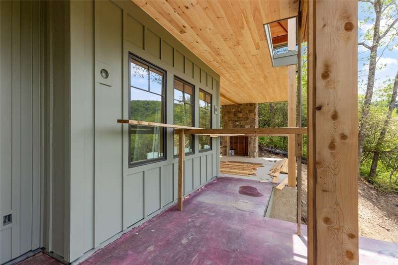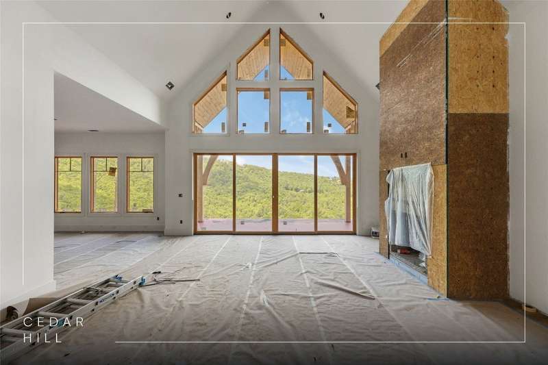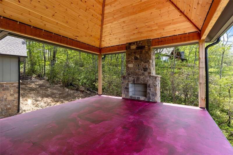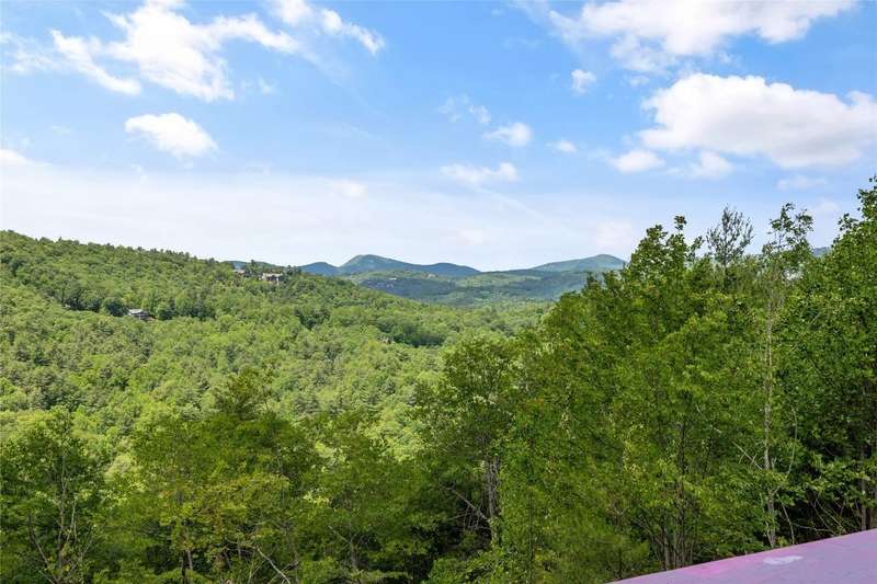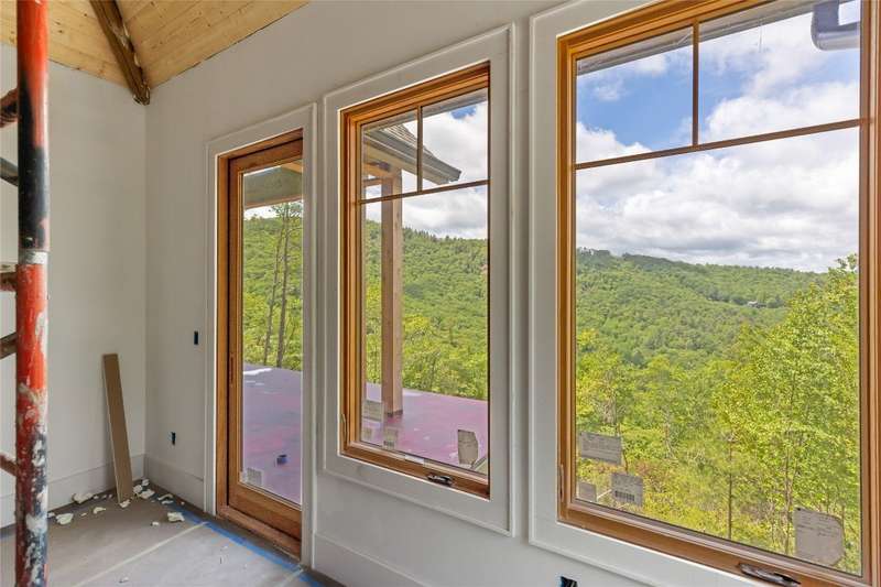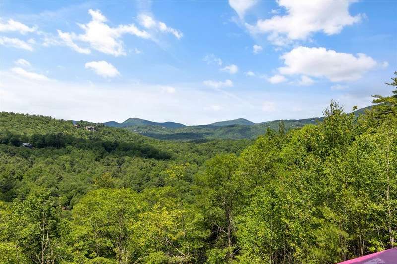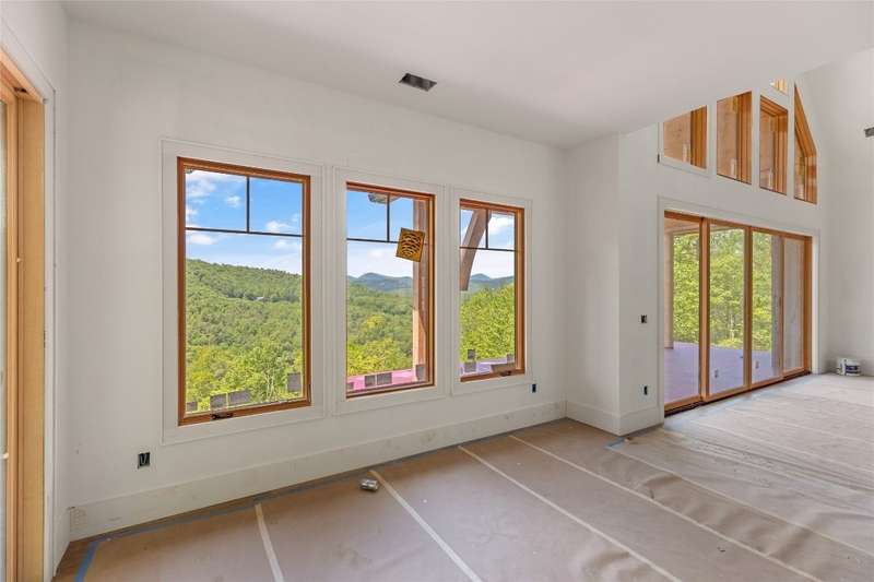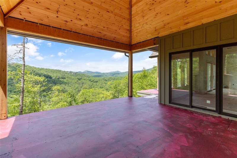 This newly constructed, custom designed residence is nearing completion in Cedar Hill, one of the Highlands Cashiers Plateau's most desirable gated communities. Perfectly situated just minutes from both Cashiers and Sapphire, this thoughtfully crafted home offers a fresh architectural approach and a seamless floor plan designed for luxurious yet comfortable mountain living. As you arrive, curated landscaping, clean architectural lines, and a welcoming presence set the tone. Expansive windows and glass doors fill the interior with natural light and frame sweeping views across the valley, with Big Sheepcliff mountain rising as a dramatic backdrop. The main level features an open living area with soaring vaulted ceilings and a striking stone fireplace, seamlessly connected to the chef's kitchen and adjacent gathering spaces-ideal for both entertaining and everyday living. Two distinct outdoor living areas extend the main level. A screened covered porch with a wood burning fireplace allows for year round enjoyment, while a separate covered veranda deck offers a serene space to relax and take in the cool mountain breeze. The primary suite on the main level is spacious and elegantly appointed, offering privacy, comfort, and convenience. On the lower level, a generous family room with a wet bar opens to two additional covered decks-one featuring another wood burning fireplace-creating the perfect setting for guests to gather and unwind. This level also includes three guest bedrooms and a dedicated bunk room, providing ample accommodations for extended family and friends. A two car garage adds architectural character and everyday functionality. For those seeking a brand new mountain retreat in a well established and private community, this home offers timeless design, panoramic views, and the best of life on the Highlands Cashiers Plateau.