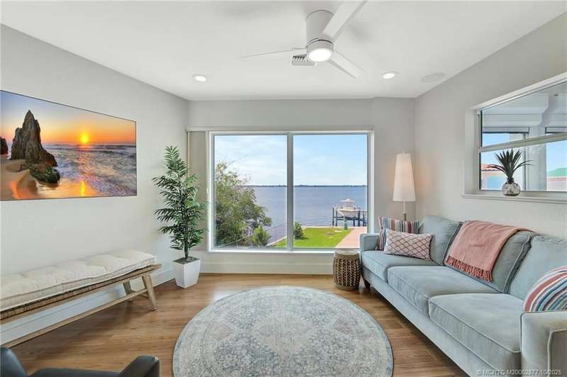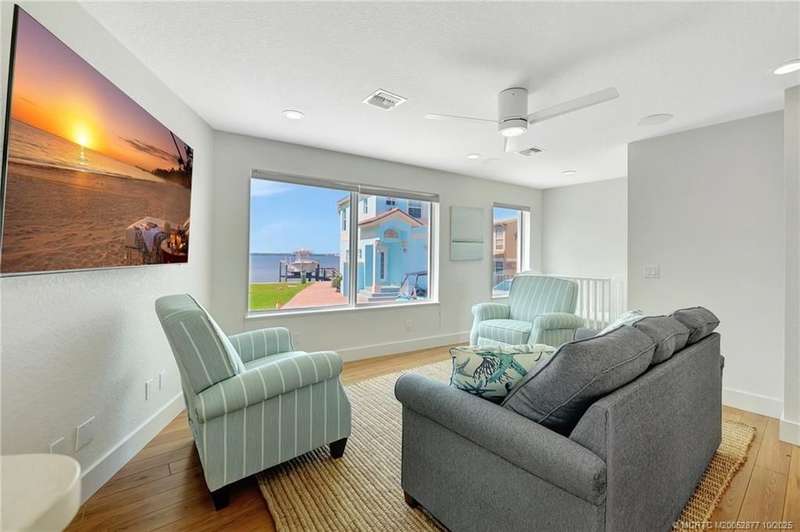 This stunn??ng two?stor?? ??u??t?m?bu??lt home offers breathtak??ng vi?ws of the Atlantic Ocean and the Indian River. The home features 2 luxurious primary suites, one on the first floor and another on the second, offering comfort and privacy for both you and your guest. The first floor features a spacious guest bedroom, a full bath, a wet bar, a laundry room, and a cozy living area facing the tranquil Indian River. The open-concept living space upstairs includes the master bedroom, a modern kitchen, a convenient dumbwaiter system that adds ease to everyday living, and a living room that seamlessly flows to the rooftop deck, perfect for enjoying sunrise/sunsets and panoramic views. This home is designed for luxury and relaxation in a picturesque coastal retreat. With endless activities for all ages, this resort community offers something for everyone to enjoy. Furniture and a golf cart are included.